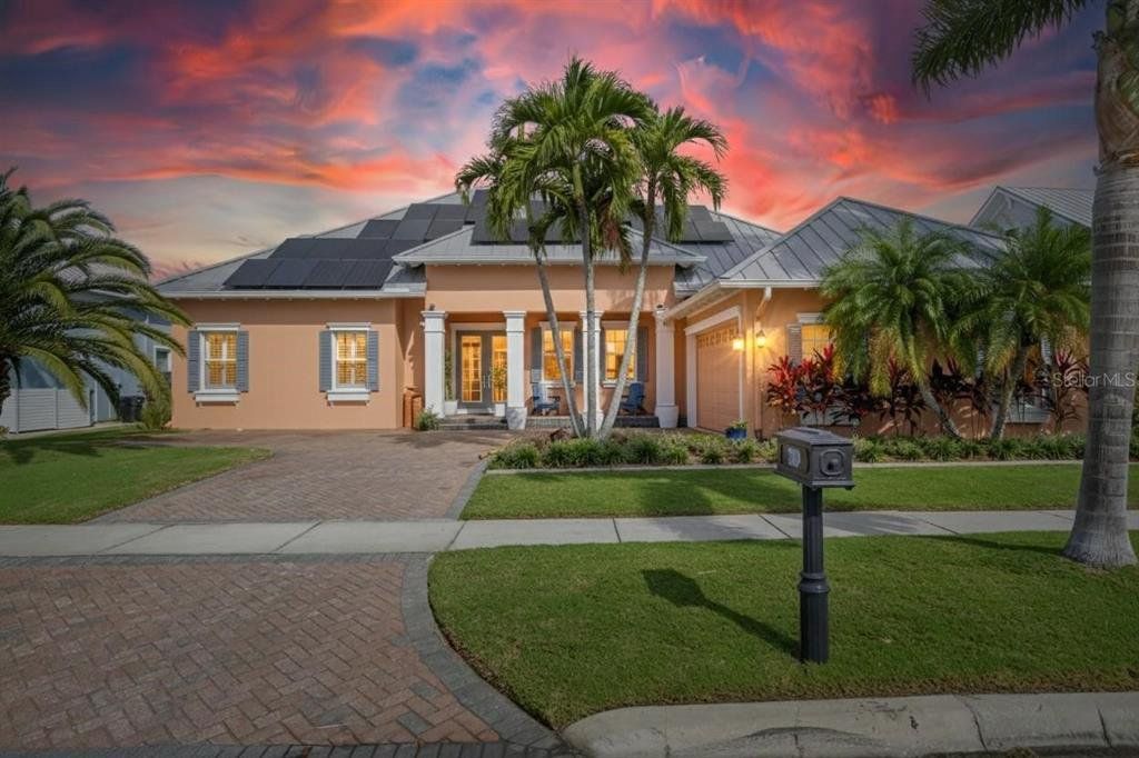 719 Islebay Dr, Apollo Beach, FL a turn-key canal-front waterfront home in the gated MiraBay community of Apollo Beach offering direct boating access to Tampa Bay with no bridges. Located on a quiet cul-de-sac end-of-canal lot, this Nohl Crest Hemingway floorplan features 4 bedrooms, 3 baths, 3,097 sq ft, private dock, and 10,000-lb lift, designed for those seeking a true Apollo Beach boating lifestyle. Unlike new construction, there no need to invest in upgraded packages, structural add-ones, or post-closing enhancements. Positioned on an expansive 80-foot waterfront lot, this MiraBay canal home offers exceptional frontage highly valued by boating enthusiasts. The wider lot allows accommodation for a 40-foot boat or smaller, providing greater dock flexibility, easier maneuvering when returning to the lift, and additional space for larger vessels or multiple watercrafts . The end-of-canal position also offers additional turning space when navigating into the lift, a valuable feature appreciated by experienced boaters. Boating is ready to go with a new seawall, private dock and 10,000-lb boat lift, offering direct Tampa Bay boating access in under 10 minutes with no bridges, locks, or restrictions. Inside, nearly 3,100 square feet of living space offers generous proportions and craftsmanship throughout. The gourmet kitchen features high-end Thermador and KitchenAid appliances, custom cabinetry, premium finishes, and a professionally engineered ventilation system with dedicated make-up air designed to enhance comfort, indoor air quality, and HVAC efficiency. Architectural details include hand-applied Venetian plaster walls, creating depth and character while creating a subtle acoustic softness not found in newer construction. A guest bathroom finished in breathable lime wash adds a spa-inspired aesthetic designed specifically for Florida’s climate. Step outside to a private waterfront retreat featuring a resurfaced pool, expansive screened lanai, privacy screens, misting system, and year-round canal views, creating an outdoor living space ideal for relaxing or entertaining along the water. Major system upgrades provide long-term peace of mind and efficiency, including a paid-in-full whole-home solar system, solar pool heating, metal roof, two newer HVAC systems with UV lights, and a new pool system, all completed within the past three years. Located within the amenity-rich MiraBay waterfront community, residents enjoy access to a clubhouse, fitness center, resort-style pools, tennis courts, pickleball, waterfront walking trails, and marina access, all just minutes from Tampa Bay.