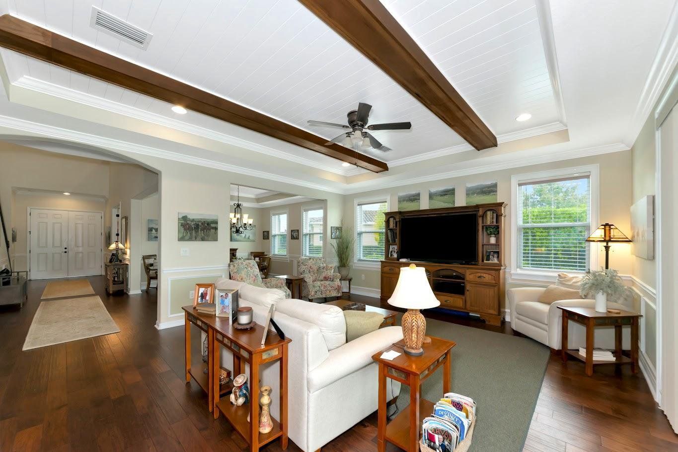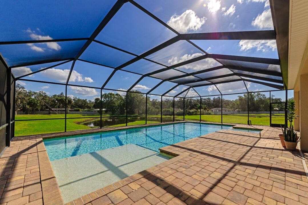 Private 3.76-acre estate • Largest saltwater pool in Vilano • All-day sun • Quiet cul-de-sac • 5 beds, 4.5 baths, 3-car garage • Rare privacy and space only 20 minutes from downtown Sarasota and the beaches. Discover a one-of-a-kind luxury retreat at the end of a quiet cul-de-sac in Vilano, one of Sarasota’s premier gated communities east of I-75. Set on a rare 3.76-acre estate lot on a former golf course, this custom-built home provides exceptional privacy, beautiful natural surroundings, and expansive indoor–outdoor living—without the maintenance. (Most of the grounds are maintained by the HOA.) Enjoy the largest saltwater, solar-heated pool in the neighborhood (44' × 18'), perfectly oriented for all-day sunshine. The paver patio and covered lanai create an ideal setting for year-round outdoor dining, entertaining, and relaxation. Inside, sunlight fills the open-concept interior, featuring a gourmet kitchen with granite countertops, desk area, pantry, and butler’s pantry. The kitchen flows seamlessly into the spacious great room and formal dining area. The main floor also includes a private office, guest suite with en-suite bath, powder room, laundry room, and extensive storage. Upstairs are four additional bedrooms, including three with en-suite baths and walk-in closets, plus a large family/media room for gathering, entertaining, or unwinding in comfort. Thoughtful finishes, crown molding, generous room sizes, and an oversized three-car garage enhance both luxury and practicality. Located minutes from top-rated schools, medical centers, and premier shopping and dining—and just 20 minutes from downtown Sarasota and its world-famous beaches—this unique property provides a rare combination of privacy, space, sunshine, and convenience. A refined home in a peaceful, sought-after location close to everything in Sarasota.