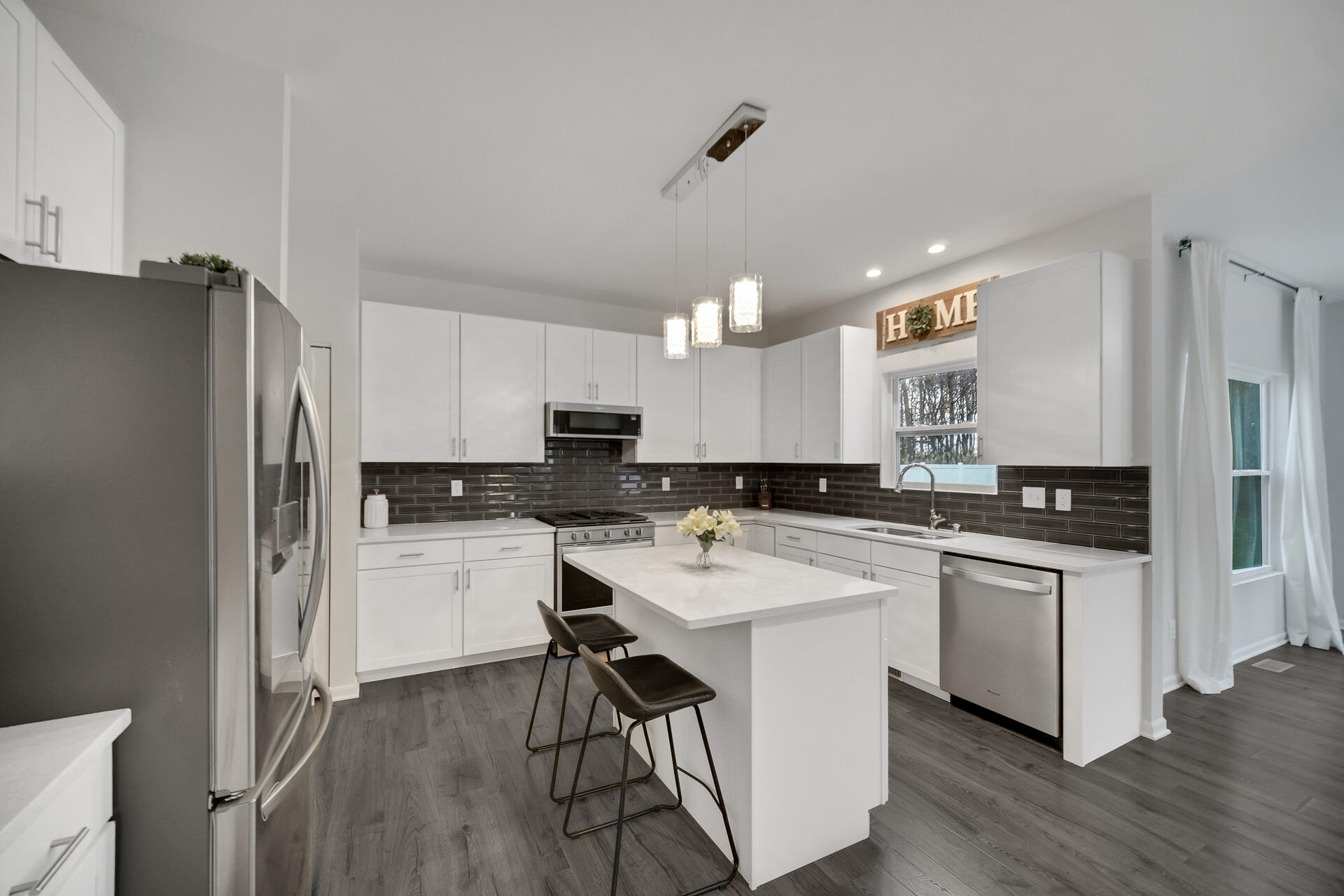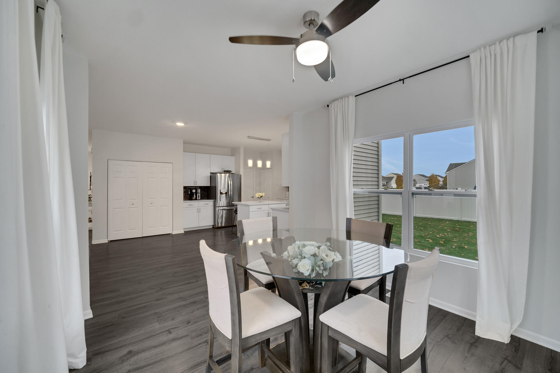Welcome to this beautifully maintained 3-bedroom, 2.5-bath home with a spacious loft and over 2,450 sq. ft. of modern living space. Built in 2019 and set on a peaceful wooded lot in a highly desirable neighborhood, this home presents a blend of comfort, style, and functionality. Step inside to an open-concept layout filled with natural light. The stunning kitchen features quartz countertops, a center island, stainless steel appliances (all included), and seamless flow into the dining space and living room—a wonderful set up for entertaining and everyday living. The second level includes three bedrooms, two full baths, and a versatile loft area great for a home office, playroom, lounge area, or second living space. The finished basement adds valuable additional living space--potential for a home theater, gym, or recreation room. Step outside to your private fenced-in backyard oasis featuring a hot tub, gazebo, and mature trees providing natural privacy and shade. Features You’ll Love: *Finished basement *Quartz countertops *Hot tub *Fenced backyard *Wooded lot *Gazebo *Kitchen appliances included *Located close to shopping, dining, parks, and top-rated schools (Crown Point School District), this home grants both convenience and a peaceful residential setting. Buyer’s agents welcome!