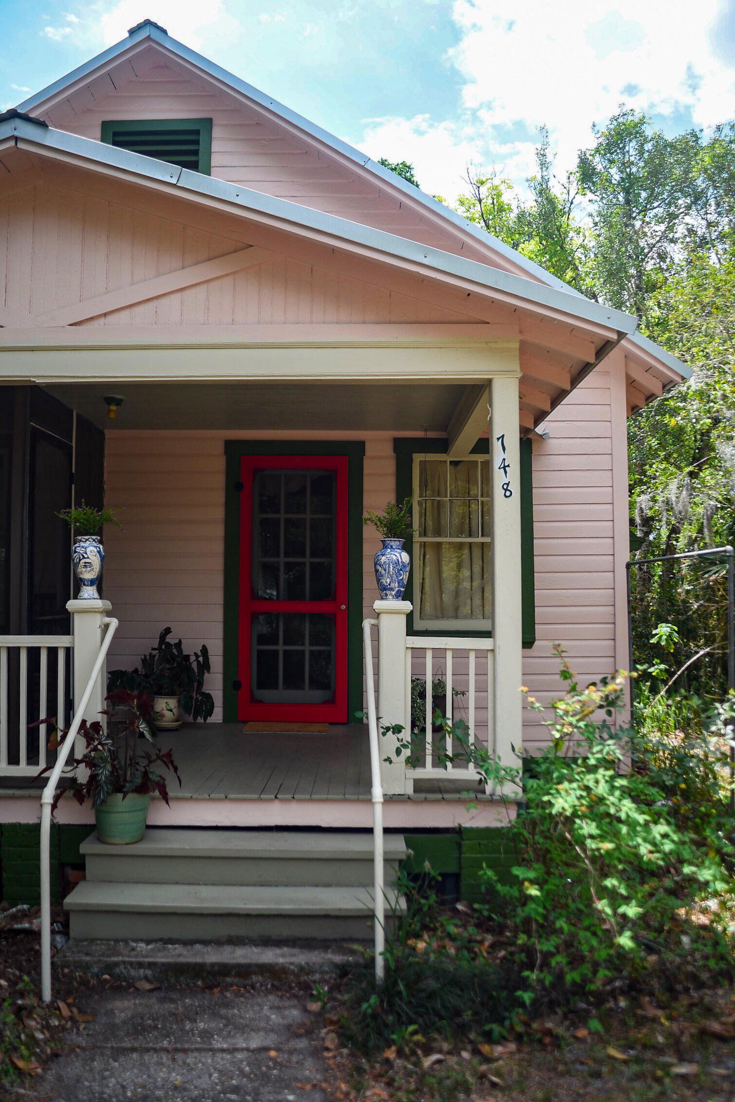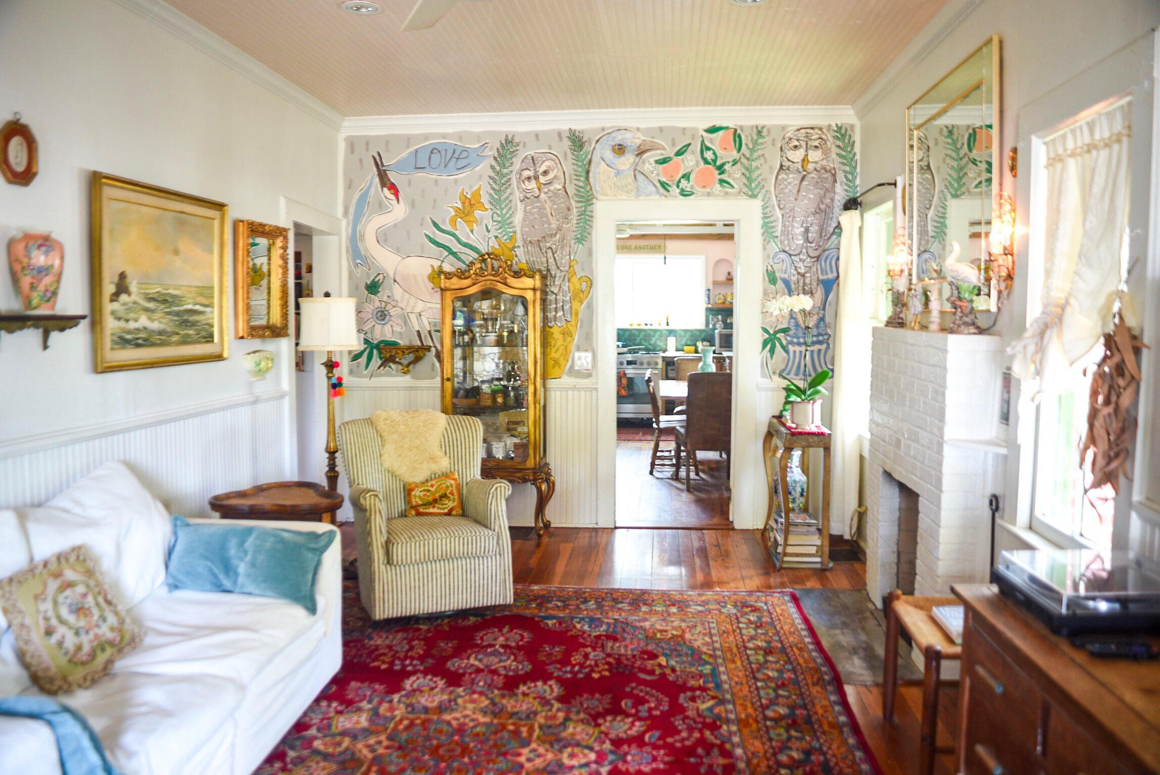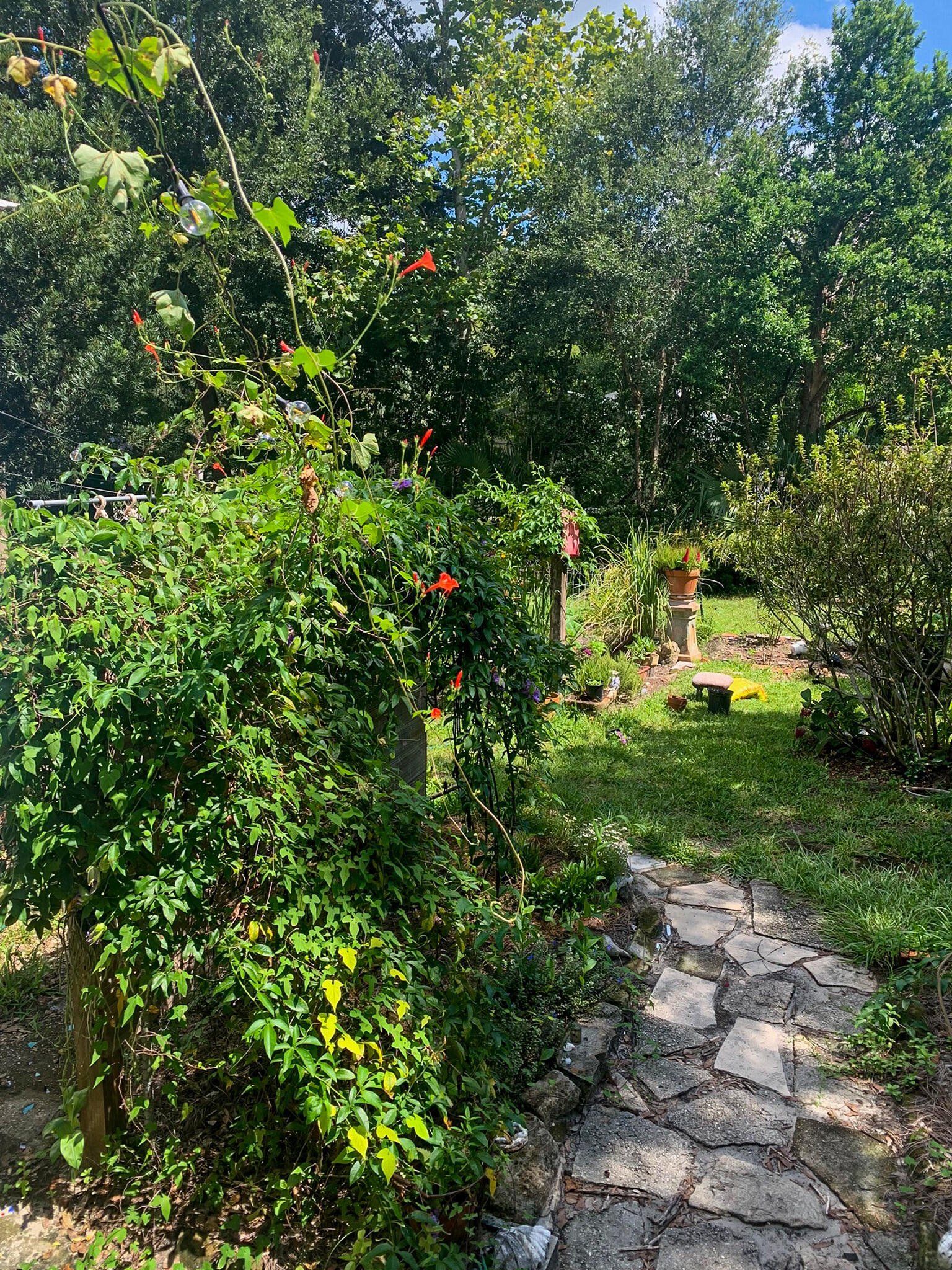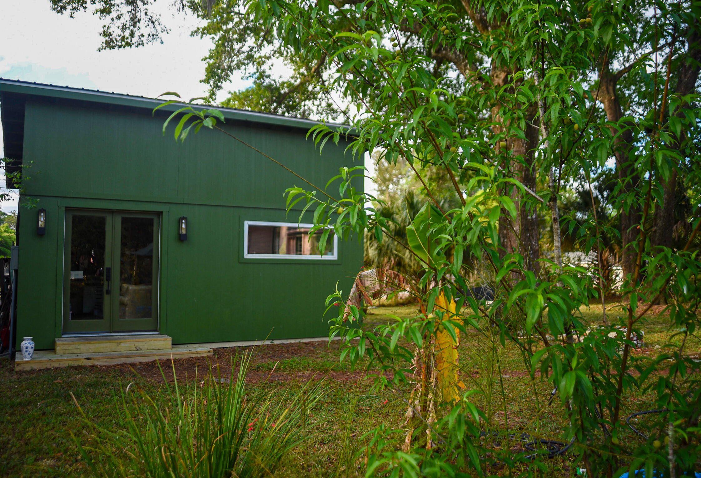 Artist Three-Bedroom Home with Detached Studio Near Downtown DeLand Just blocks from Downtown DeLand’s historic district, this three-bedroom, two-bathroom home offers a flexible layout and a newly constructed, climate-controlled detached studio— for a home office, workshop, or creative space. Inside, you'll find heart-of-pine tongue-and-groove ceilings, a wood-burning fireplace with brick surround, and custom artistic touches including hand-painted doors and murals. The kitchen has been updated, and the home features new AC units, insulation, electrical, tankless gas water heater, plumbing, and fresh interior and exterior paint. Outdoor highlights include native landscaping, a fenced backyard, fire pit, and screened-in front porch.
