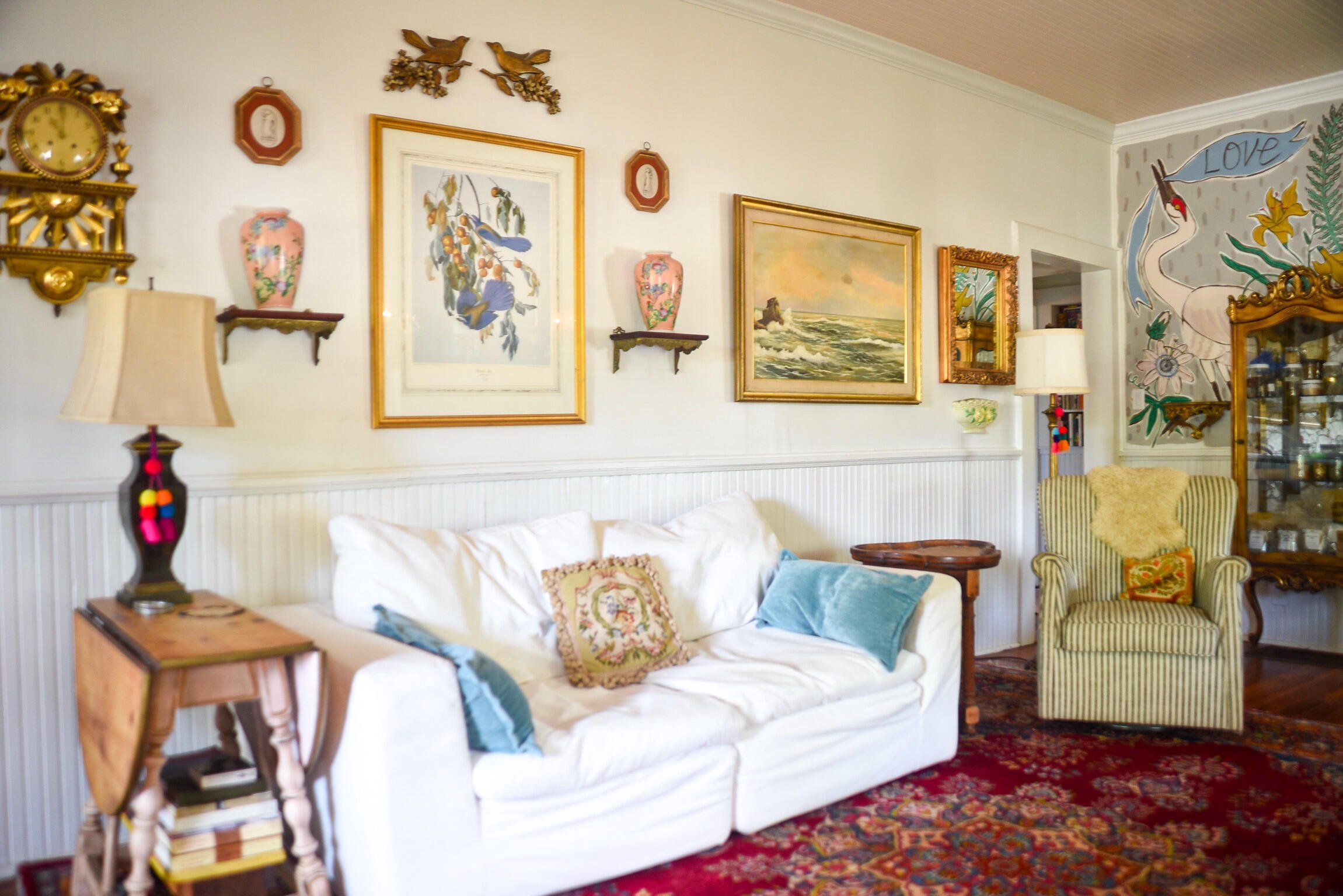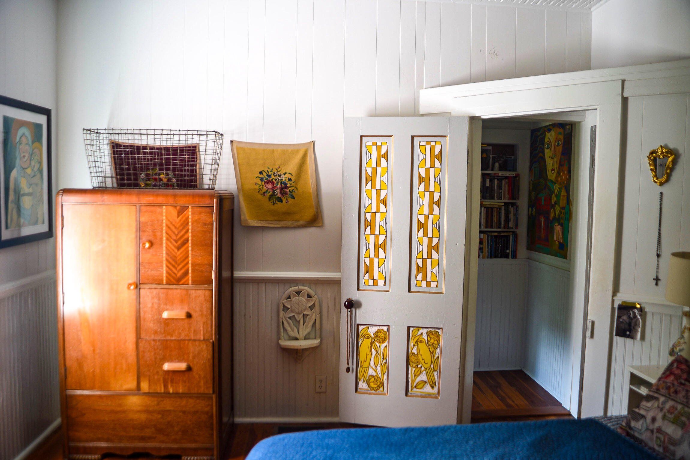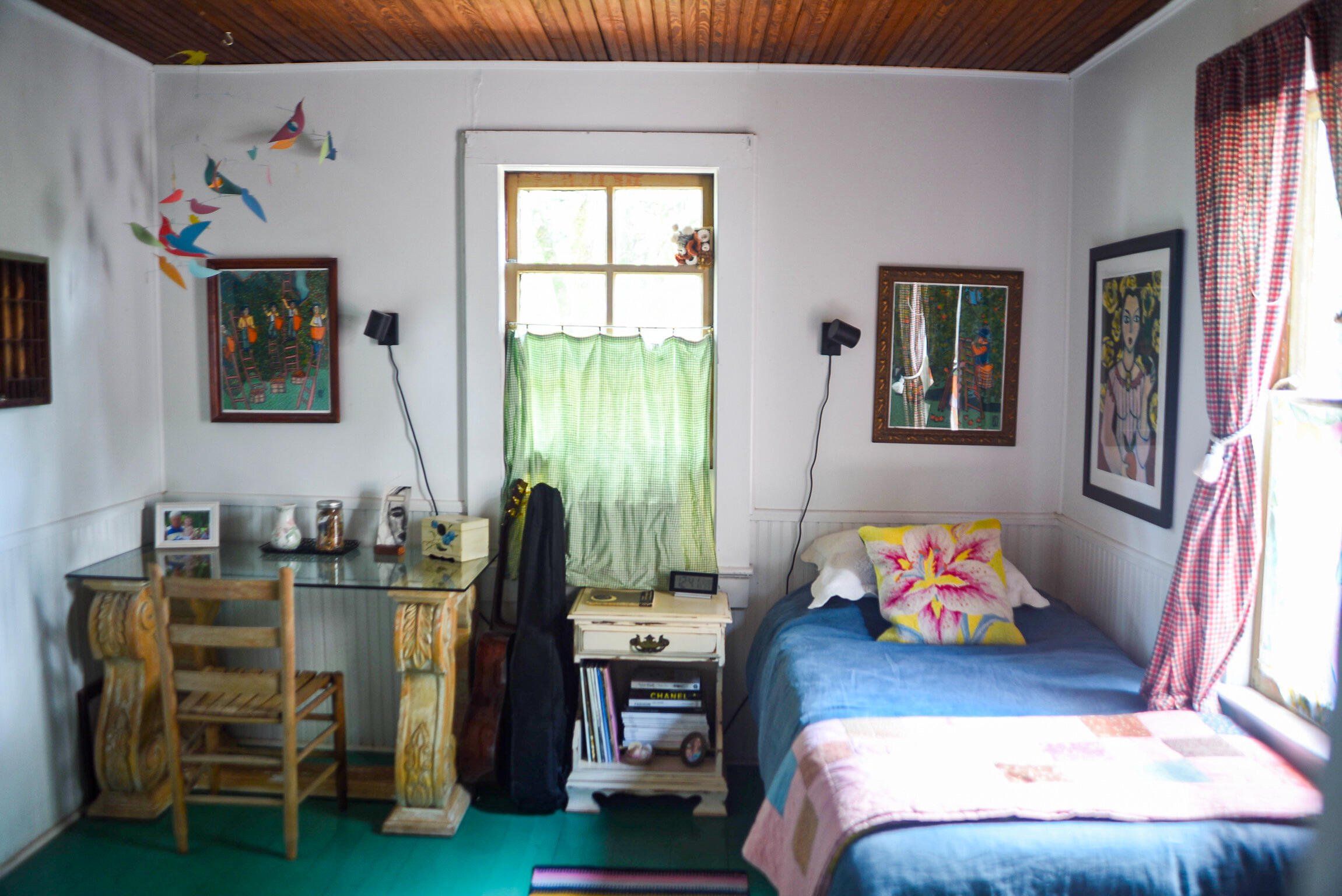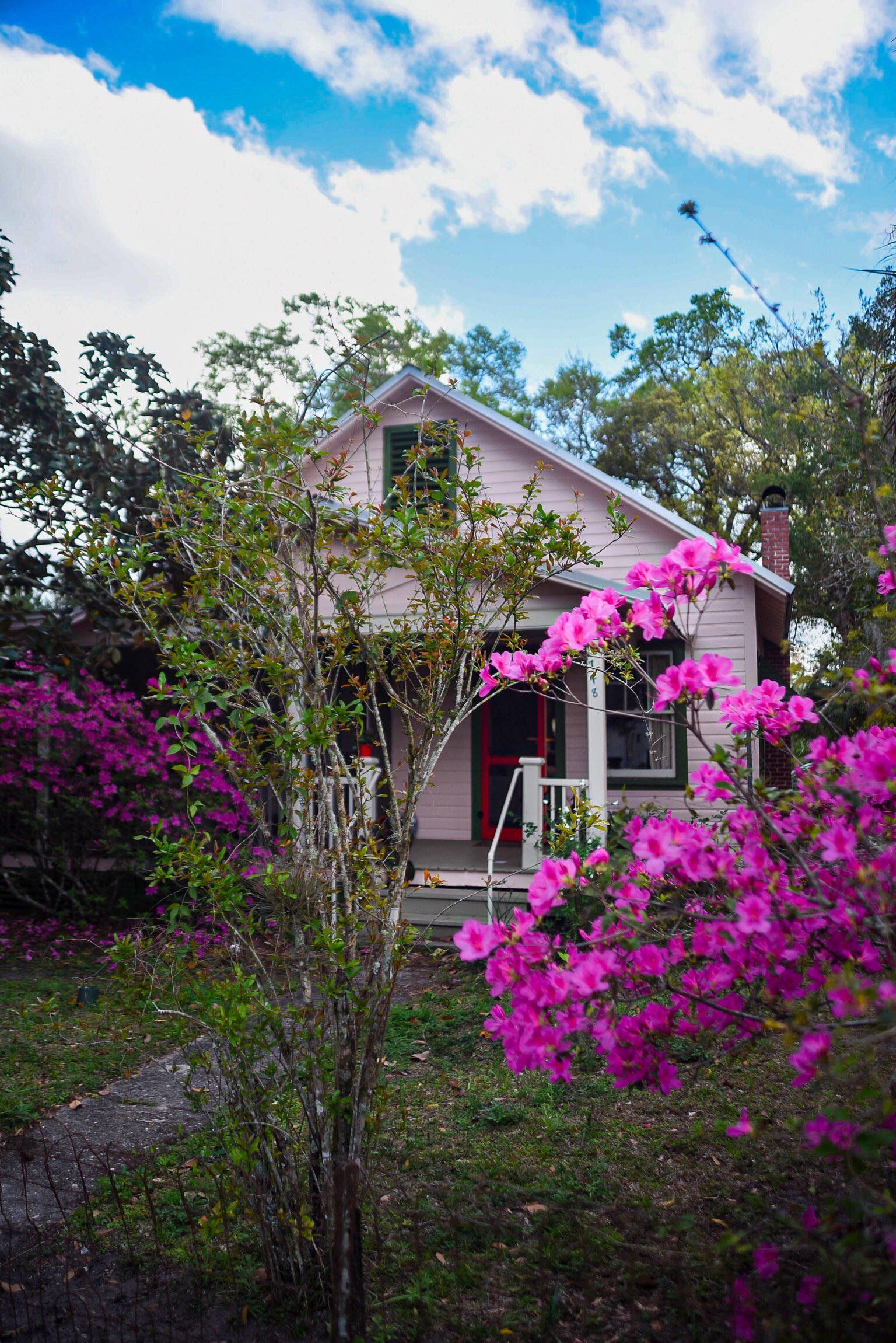 Artist Three-Bedroom Home with Detached Studio Near Downtown DeLand Just blocks from Downtown DeLand’s historic district, this three-bedroom, two-bathroom home offers a flexible layout and a newly constructed, climate-controlled detached studio— for a home office, workshop, or creative space. Inside, you'll find heart-of-pine tongue-and-groove ceilings, a wood-burning fireplace with brick surround, and custom artistic touches including hand-painted doors and murals. The kitchen has been updated, and the home features new AC units, insulation, electrical, tankless gas water heater, plumbing, and fresh interior and exterior paint. Outdoor highlights include native landscaping, a fenced backyard, fire pit, and screened-in front porch.
