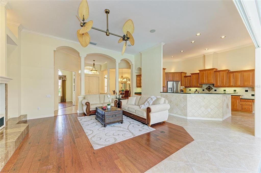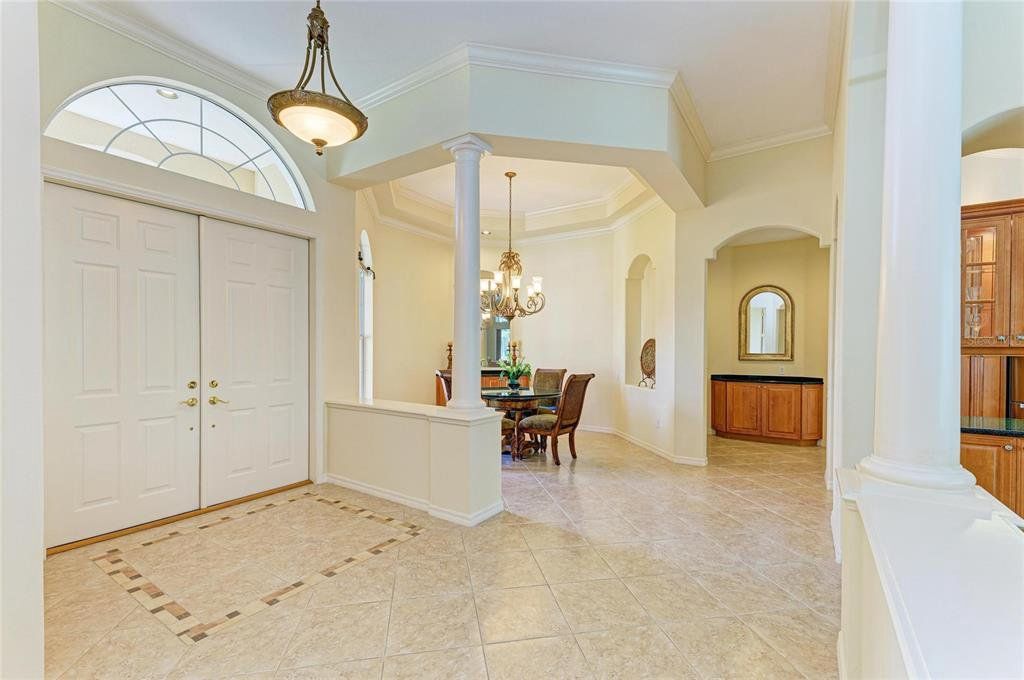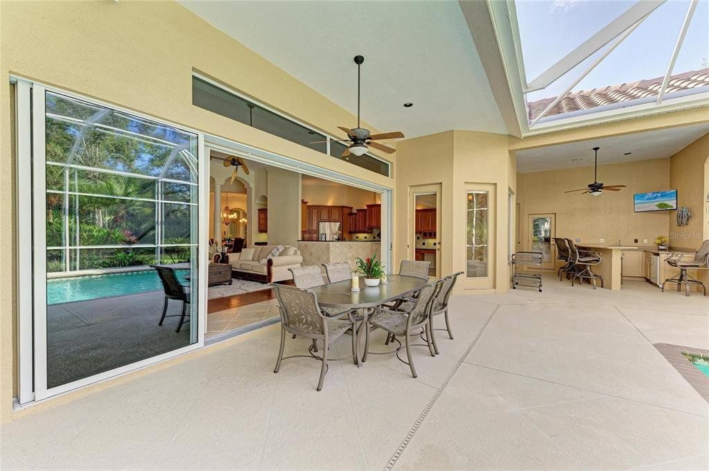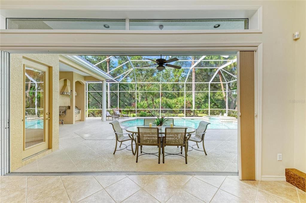 A brand-New tile roof just installed at a cost of $60,000, offering lasting beauty, value, and peace of mind for years to come. Gorgeous home nestled in the highly sought-after Sanctuary at River Club. This elegant residence combines timeless design, quality built, and a true sense of privacy. Approaching the paver driveway of three car garages, double entry door will take you to this spacious foyer, high ceiling, crown moldings, lots of architectural details. This beautiful home offers 3 bedrooms, 3 baths, versatile den, perfect for a home office or guest retreat, all designed with an open floor plan ideal for both comfortable living and entertaining. The large kitchen features an island, cambria quartz countertops, rich wood cabinetry, stainless steel appliances seamlessly opening to the main living area with high ceilings, crown moldings, decorative fans throughout. The home has been lovingly maintained by its original owner, showcasing true pride of ownership throughout. Every detail reflects years of care and attention, ensuring the property is in exceptional condition. The luxurious primary suite offers dual closets, a jetted tub, walk-in shower, and a large bathroom with abundant natural light. In the hallway across from the laundry room a separate storage room adds convenience and versatility. This home features a built- in central vacuum system and new HVAC heat pump and air handler installed 2024. Step outside to a spacious screened lanai overlooking lush, beautifully maintained professionally landscaped grounds with accent lighting, creating a stunning nighttime ambiance. A large heated saltwater pool and a relaxing spa, outdoor kitchen with built in gas grill, six outdoor speakers perfect for year-round enjoyment and outdoor entertaining to enjoy the Florida lifestyle. River Club is a golf community located in the center of Lakewood Ranch with low a HOA fee No CDD fee, conveniently, minutes away from many fine restaurants, UTC Mall, medical facilities, A-rated schools, golfing, Polo competitions, Sunday’s farmers market and short distance drive to most beautiful beaches. This home truly offers the best of Florida luxury living.
