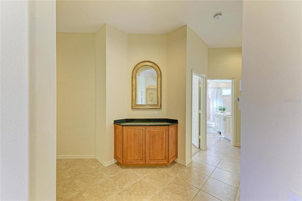 Interior Features: Ceiling Fan(S), Central Vacuum, Crown Molding, Dry Bar, Eating Space In Kitchen, High Ceilings, In Wall Pest System, Open Floorplan, Primary Bedroom Main Floor, Solid Surface Counters, Solid Wood Cabinets, Stone Counters, Tray Ceiling(S), Walk-In Closet(S), Window Treatments