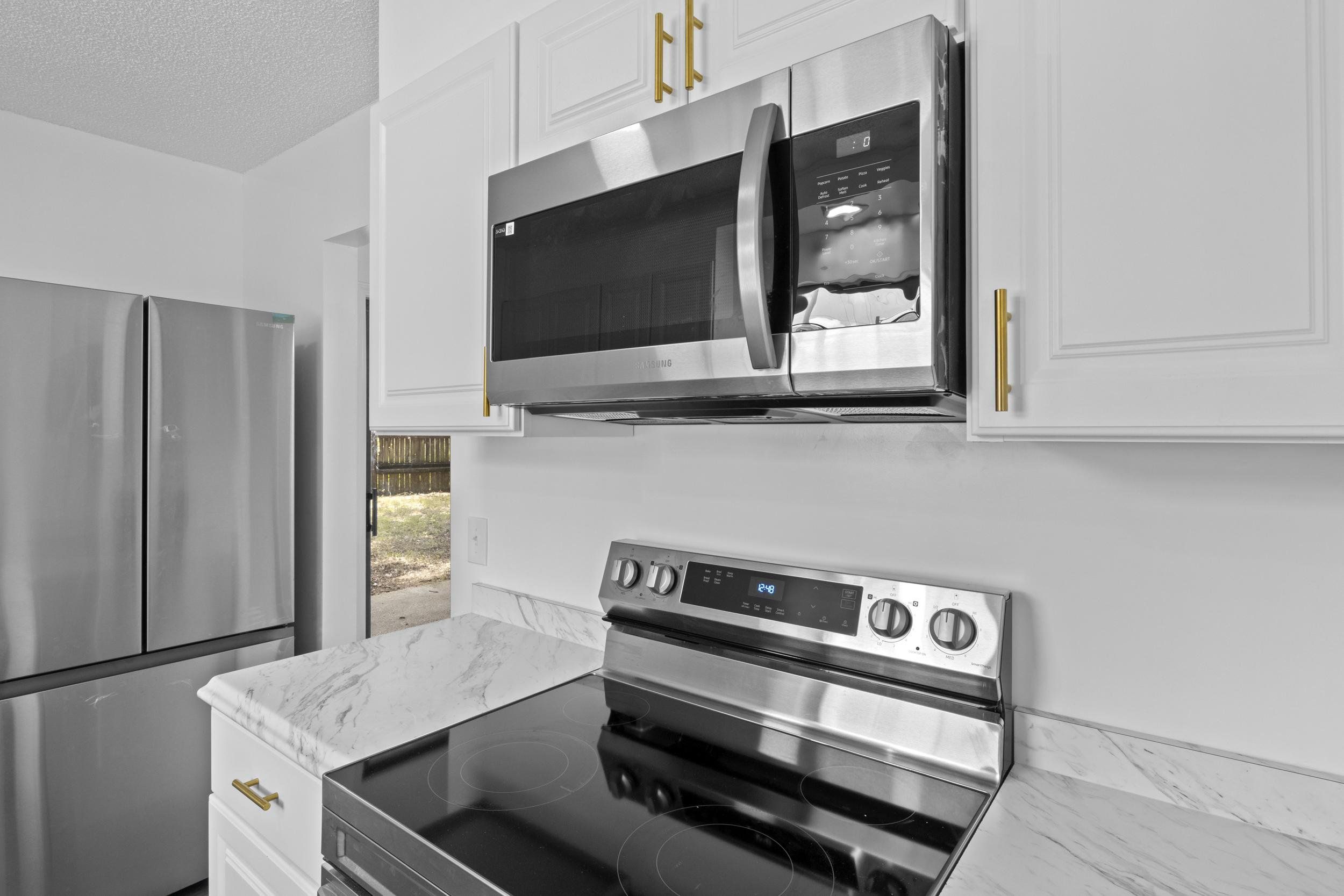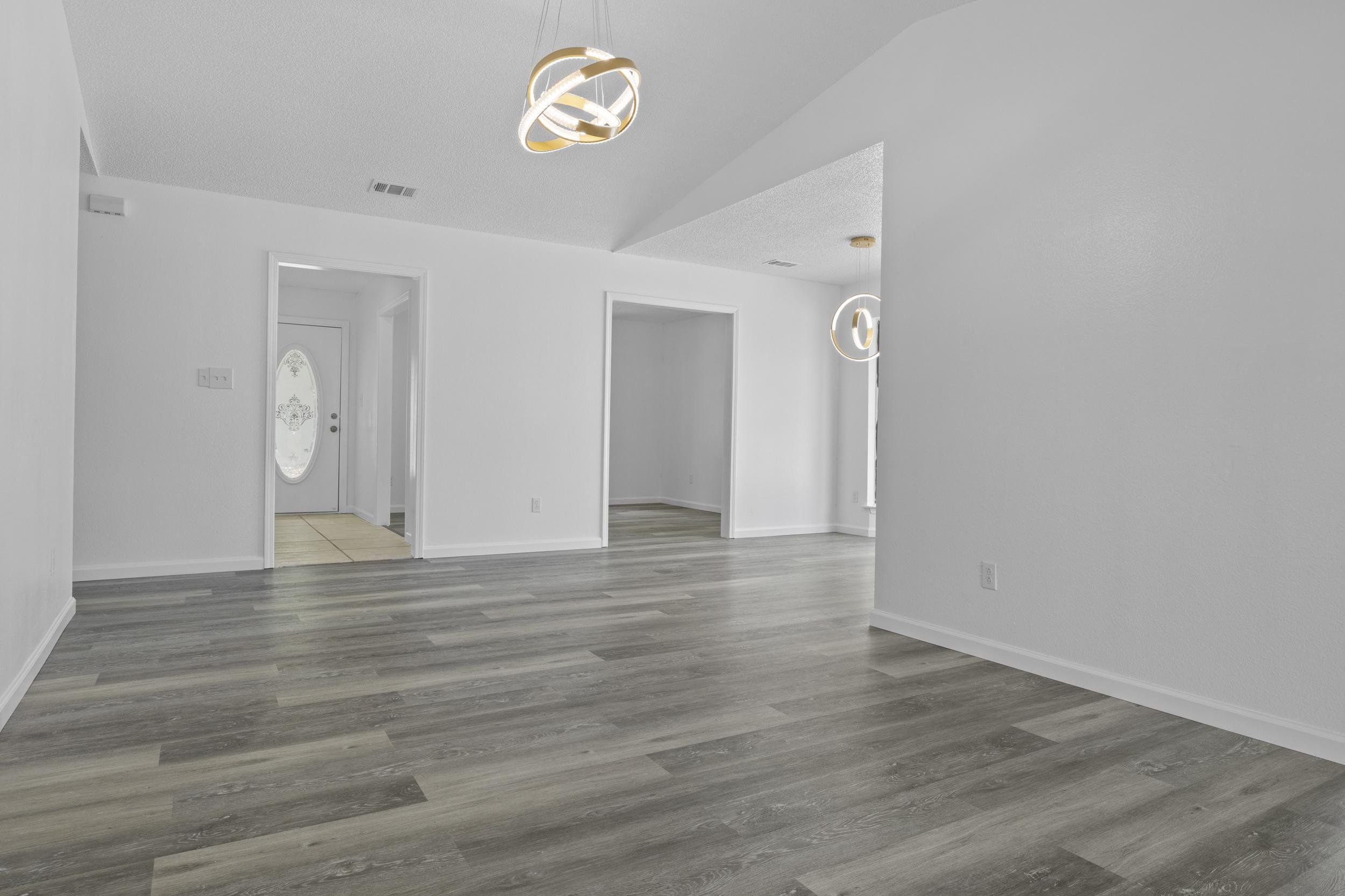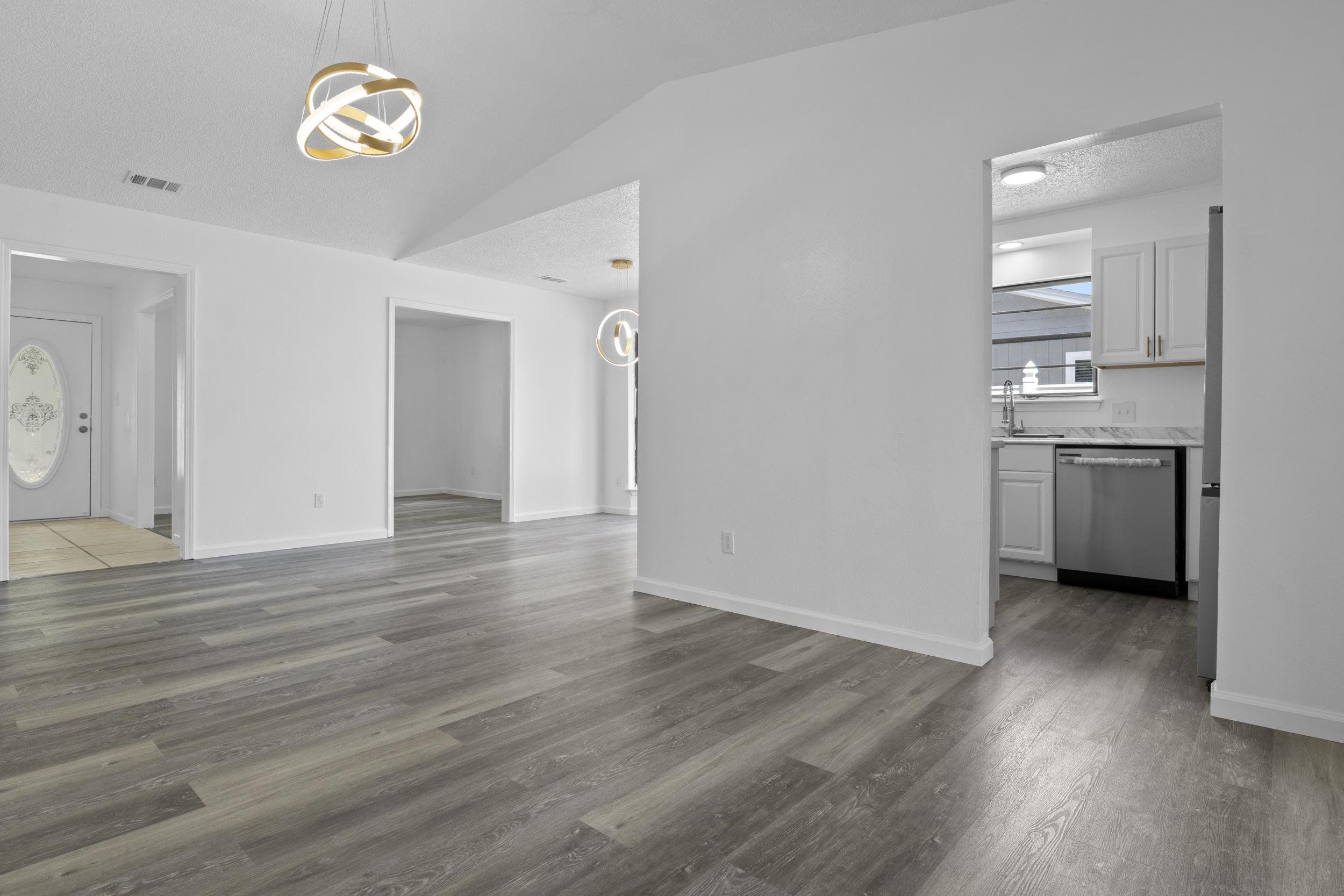Welcome to your Dream home in sunny FL! Modern home featuring sleek finishes. 3Bed/2bath/1CarGarage. Enter living room and be wowed with high ceilings dripping with beautiful gold chandelier accents to catch anyone's attention. Brand new Kitchen cabinets and counter tops. Recess lights to light up your new Samsung stainless steel appliance package. The master suite is a true retreat, featuring a large closet and a luxurious en-suite bathroom with glass bowl vanities, premium fixtures throughout. space for family, guests, or a home office. Outside, enjoy a low-maintenance yard and a cozy patio, dock ideal for outdoor dining, bbq. Storage shed. Close to good schools, pier, beaches and restaurants. Last chance at a affordable price!