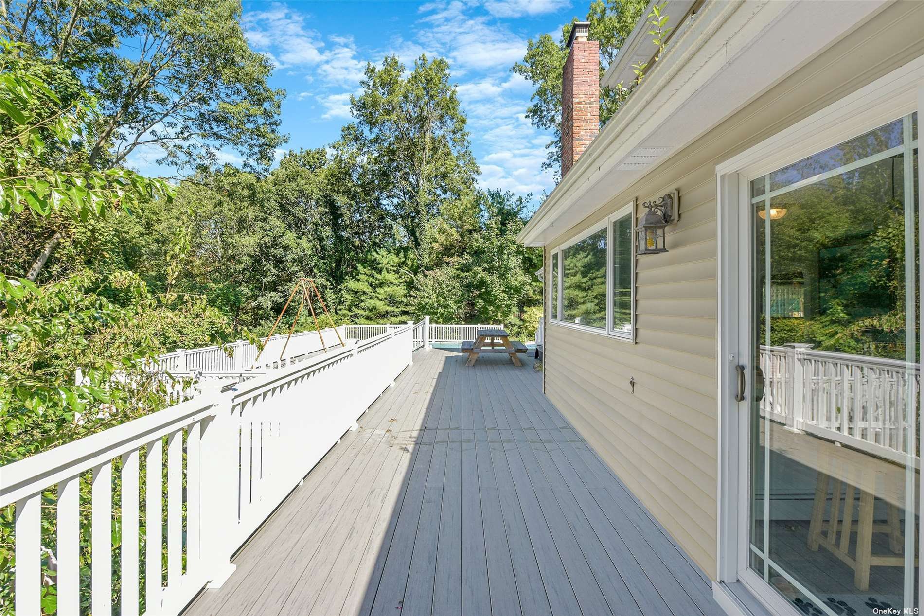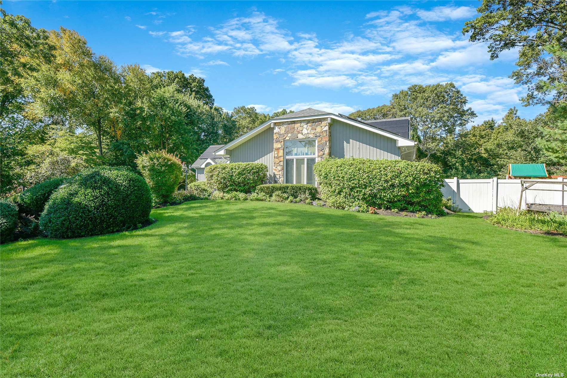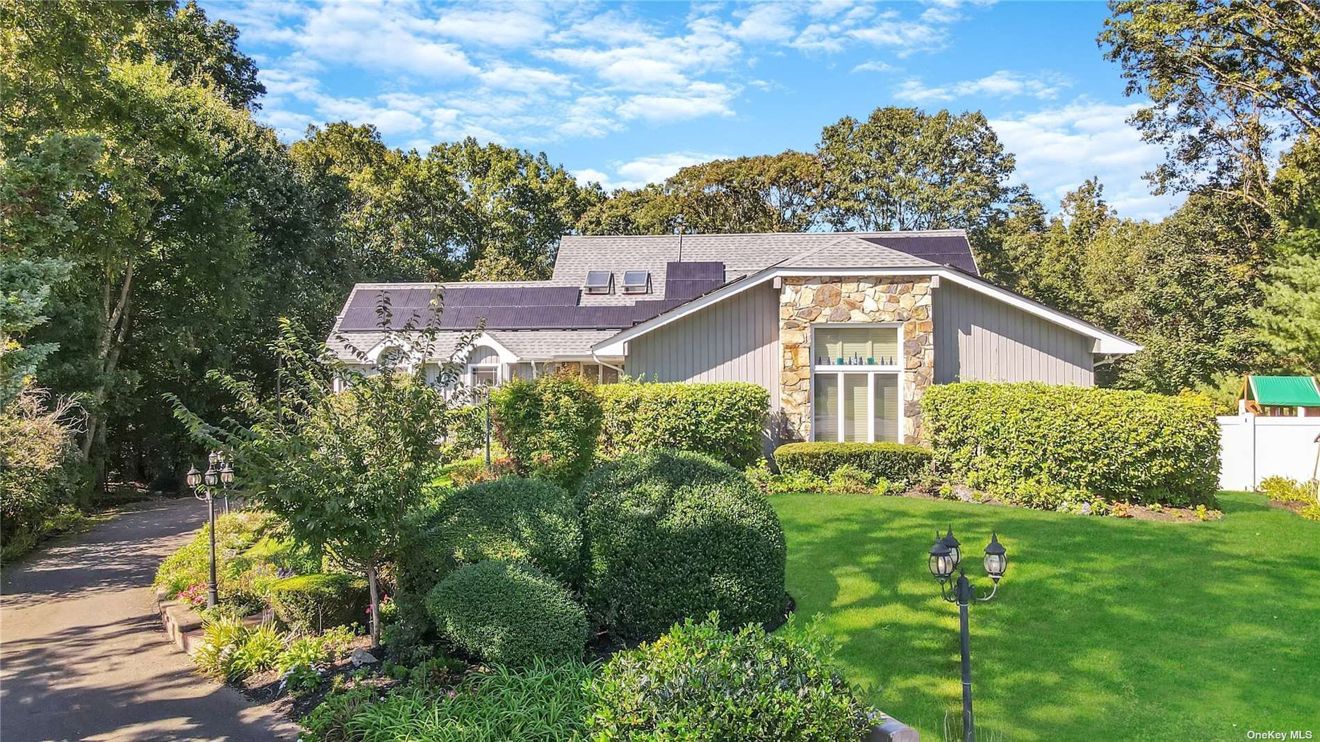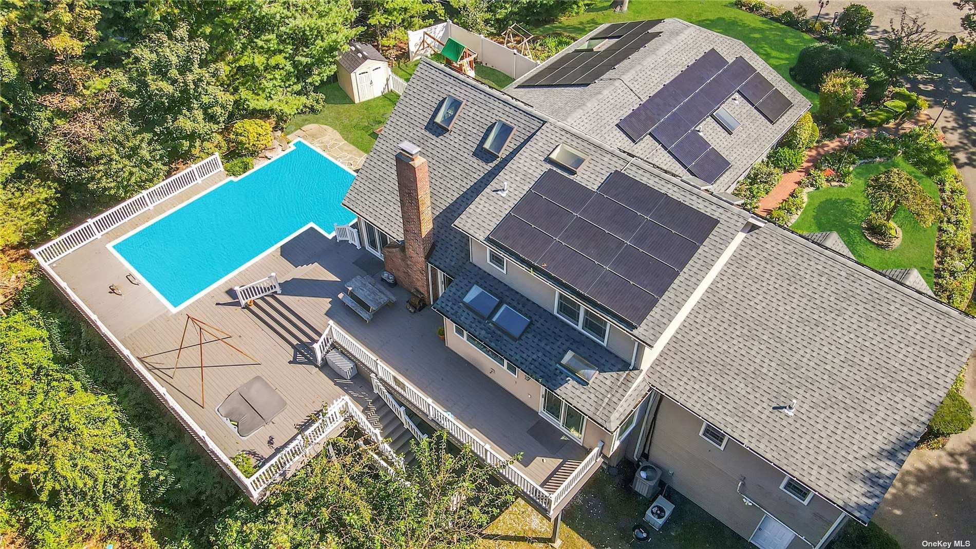 Located in the Branches is this unique opportunity to own this expanded, renovated Farm Ranch on the tip of the cul de sac. Set on 1/2 acre wooded lot offers ultimate privacy! This unique home offers: new Anderson windows, new roof, owned solar panels, new kitchen, new bathrooms, newly finished basement for added living space, new pool cover, liner & heat pump. Side entry 2 car garage with electric car hook up. Full finished basement with full bath - perfect for guests, finished storage area with shelving. Private backyard oasis with multi level, expansive new trex decking, vinyl fencing leading to playground and heated in ground pool for ultimate entertainment!