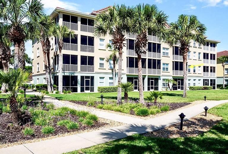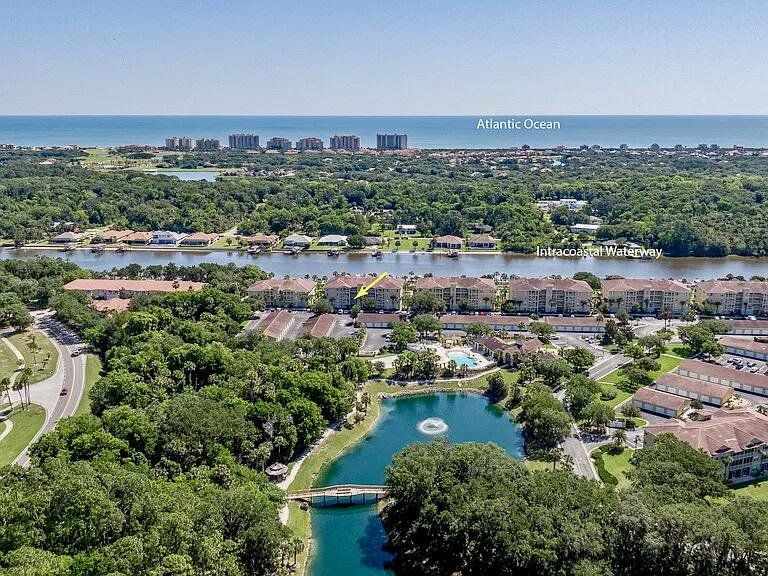 UNOBSTRUCED WATERWAY RIVER VIEW! Upscale 3 BR/2 Bath spacious WATERFRONT unit! Lovely kitchen, granite counters, pantry, eating bar, open floorplan, laundry, large master w/water view, 2 huge closets, luxury master bath, dual sinks, linen closet. 2 BRs in separate wing w/bath & more storage. Partially furnished! Screen porch w/ceiling fan for comfort. Nonsmokers. Bldg elevator. Strong HOA financials, dues include DSL & cable! Garage included! Resort complex with lush ponds/fountains, pristine clubhouse w/lounge, kitchen, Gym & more. Paradise awaits; beach-entry pool, jetted spa, outdoor shower, covered patio, surround sound, private pool cabanas, volleyball, basketball, BBQs. Plush complex on Intracoastal Waterway w/boat marina, kayak launch, screened dock, fishing, view birds, manatees, dolphins, watch boats sail by! Acres of trails connect to 5 mile waterfront bike / walk trail & more. Walk to Euro Village shops/dining! 5 min to upscale beach w/parking/showers. Golf, shops/retail/dining nearby. 30 min to St. Augustine or Daytona Bch. Come experience the Florida lifestyle! UPDATE, THIS HOME HAS A LONG TERM TENANT THROUGH SEPTEMBER 2027.