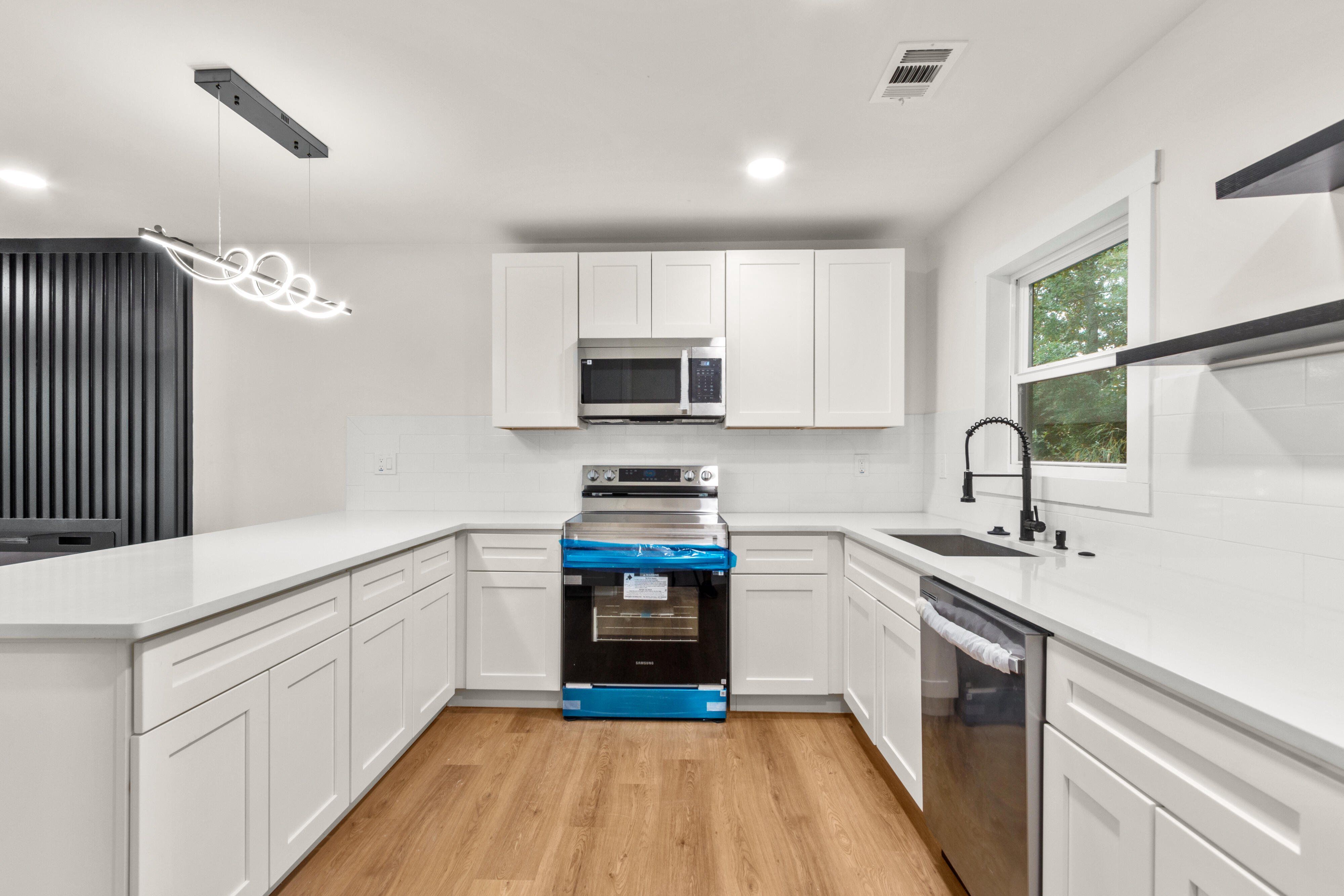 This beautifully remodeled 3-bed, 2-bath home is packed with upgrades and modern finishes that make it truly move-in ready. Step inside to an open layout with sleek modern lighting, a remote-control fireplace, and new windows that fill the space with light. The chef’s kitchen offers Samsung appliances, quartz countertops, and a tile backsplash. The master suite is a true showstopper, featuring a spa-like bathroom with a double vanity, designer tile, and jaw-dropping modern finishes. Both bathrooms are fully updated, and a brand-new deck makes entertaining easy. This is more than a home—it’s a lifestyle upgrade. Don’t miss your chance to make it yours!
