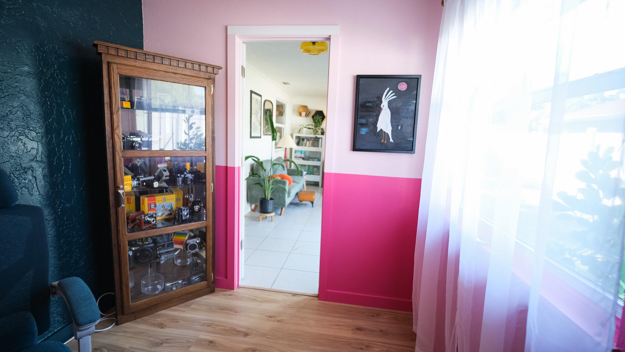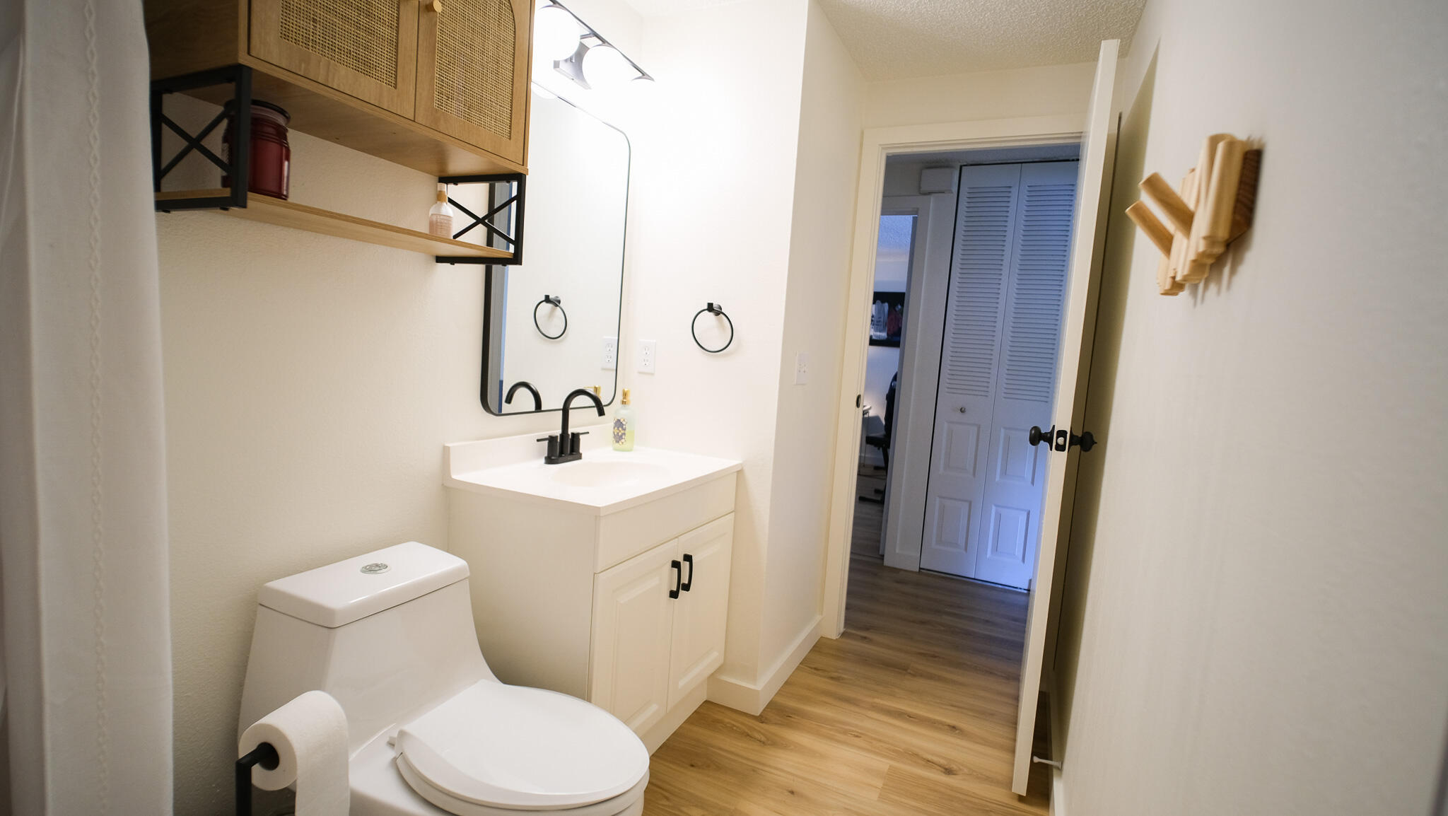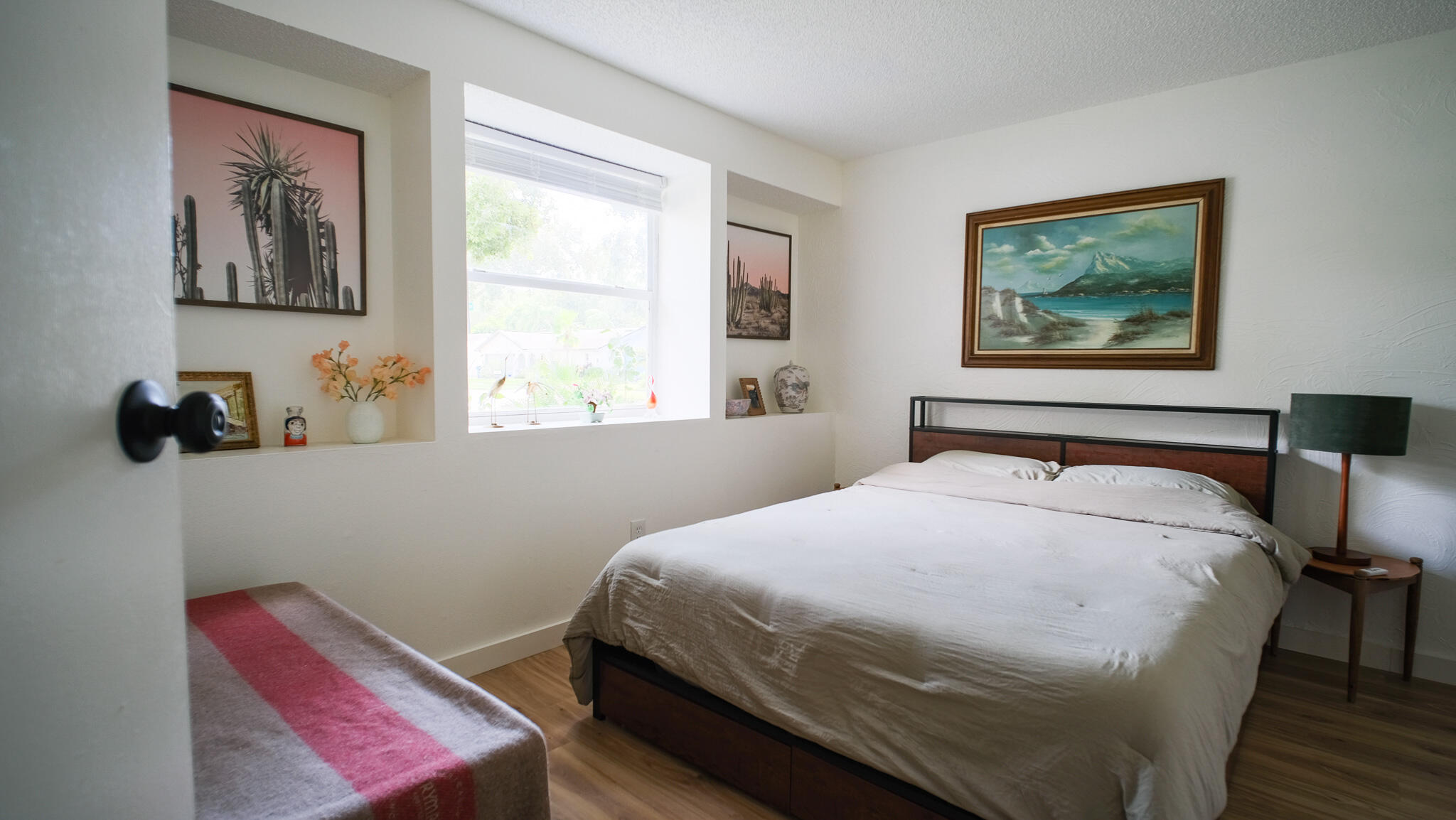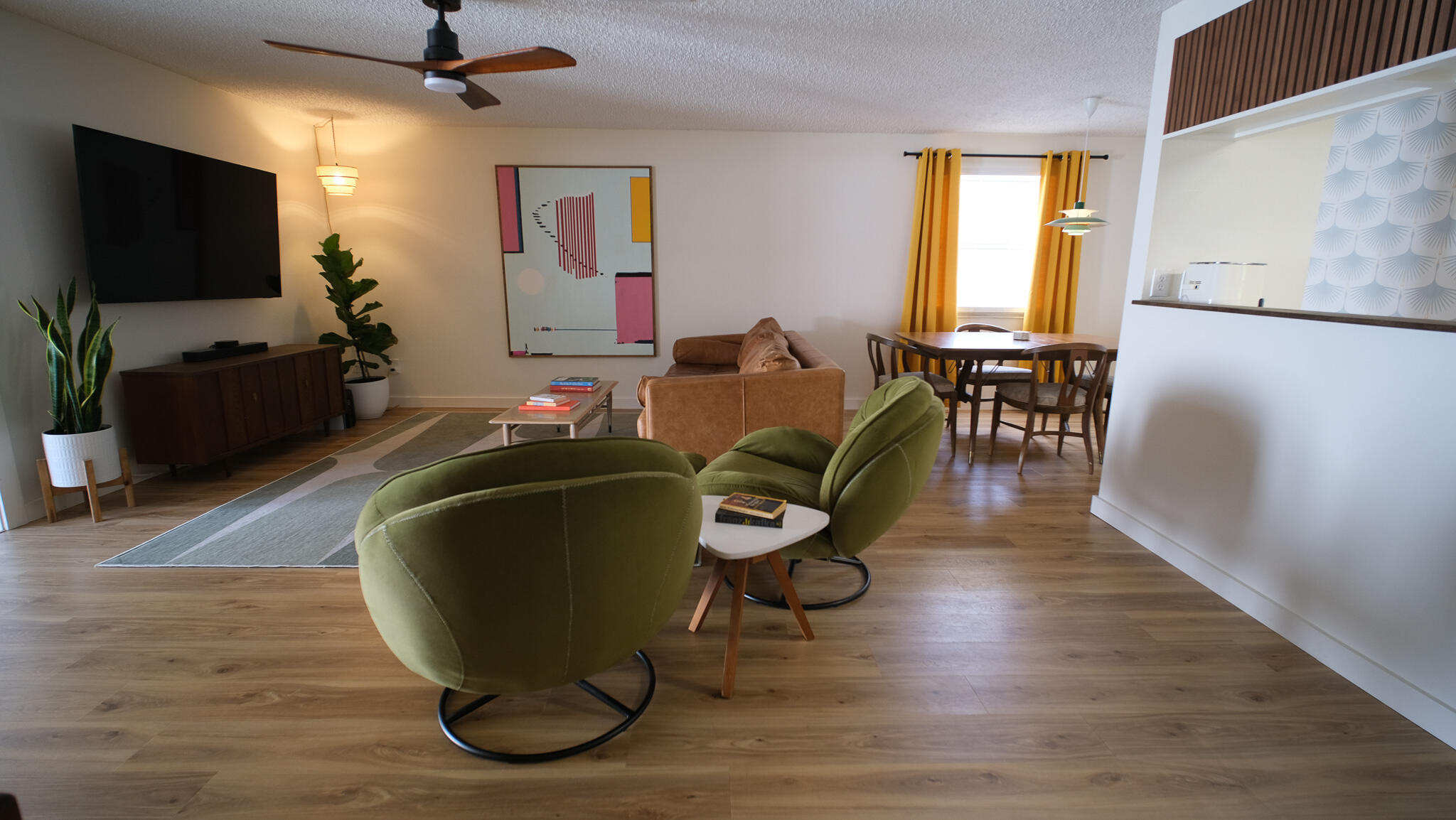 Move-in ready and freshly renovated, this 3 bed / 2 bath home blends mid-century modern style with beachy coastal vibes. With thoughtful updates inside and out, bonus living spaces under HVAC, and a lush tropical backyard, this home is designed for comfort and entertaining. Recent Renovations: -New waterproof LVT floors throughout -Mid-century modern light fixtures, ceiling fans, door hardware, and cabinet pulls -Accent wall with mid-century wallpaper in the dining room -Kitchen with sea-glass subway tile backsplash, stainless steel fridge w/ water dispenser, new dishwasher, new countertops, pantry, breakfast nook, and abundant cabinets -Front-loading washer/dryer included -Main bathroom fully remodeled -New roof (2023), newer A/C