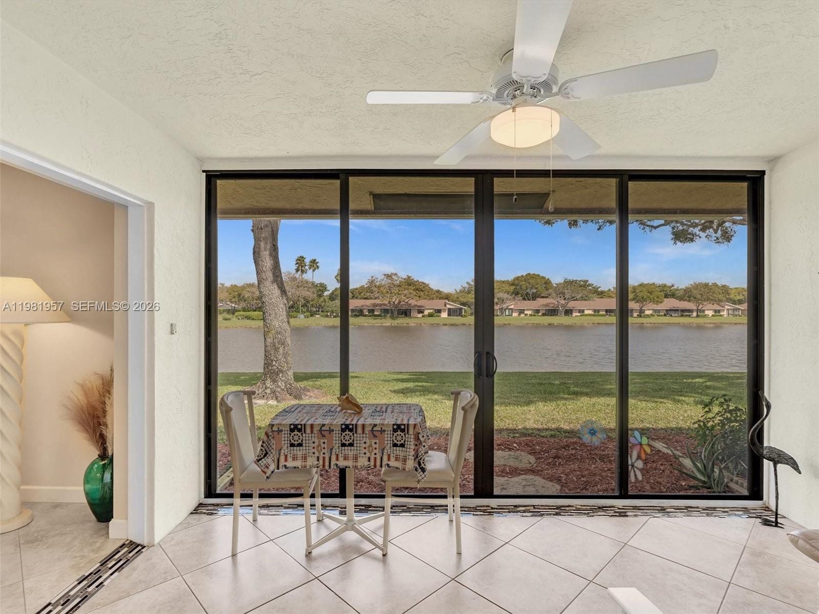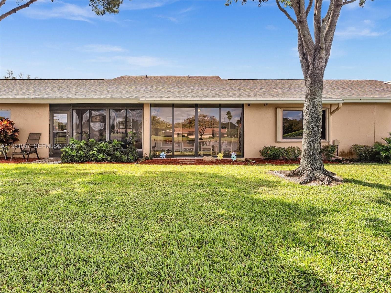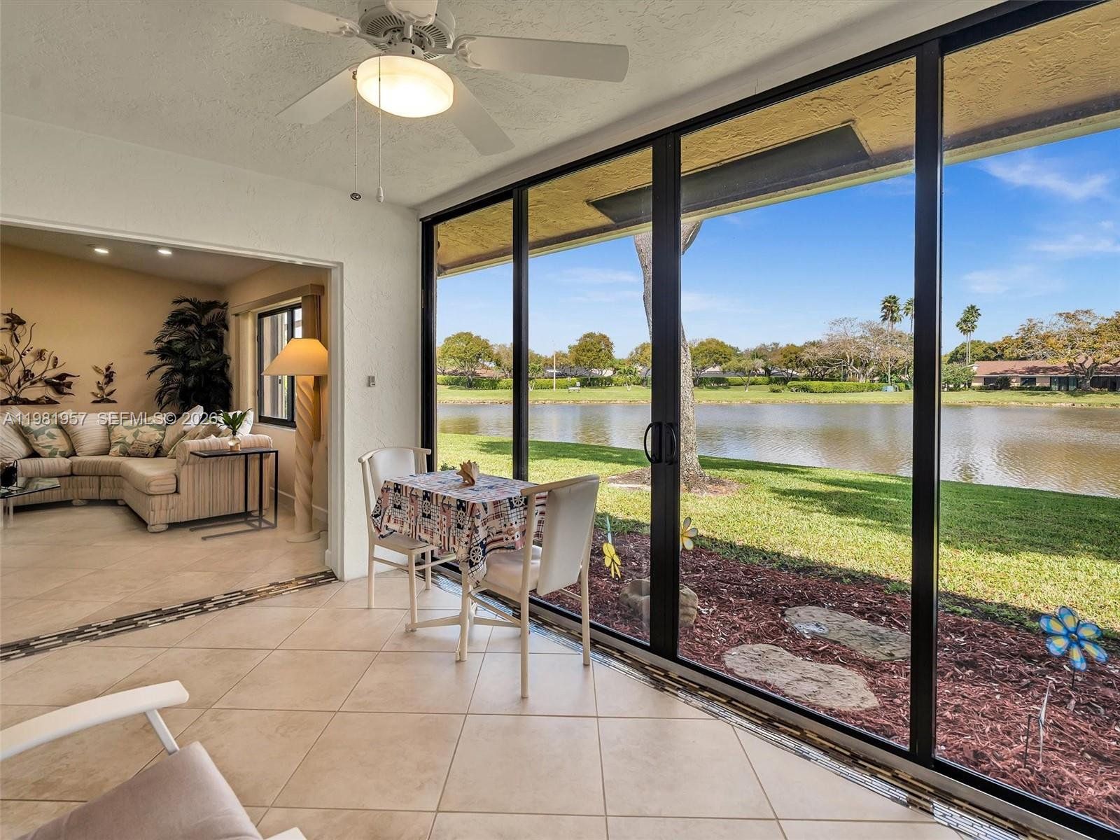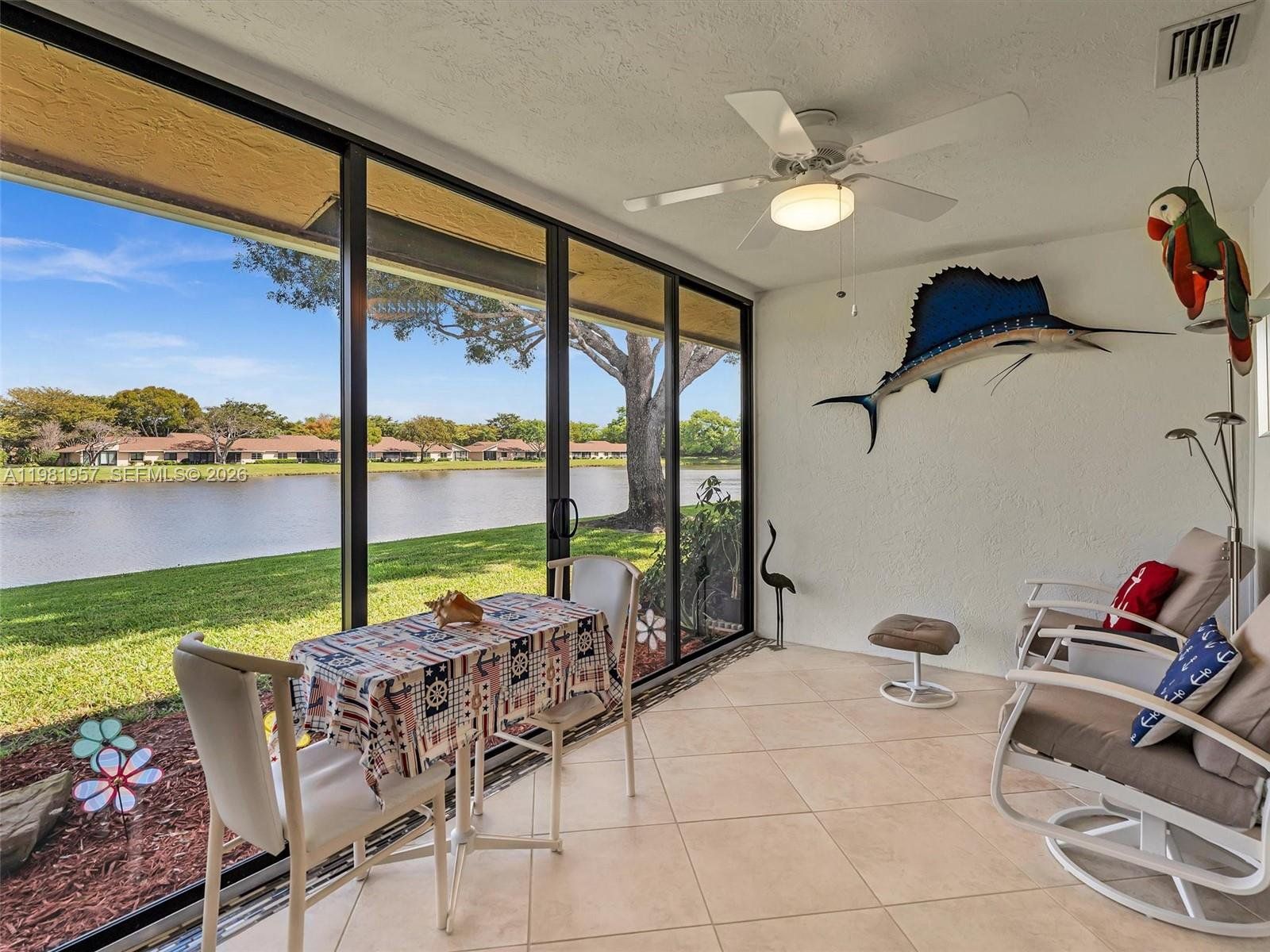 Welcome to your private oasis in one of Boca Raton's most desirable 55+ gated communities. Beautifully updated 2/2, lakefront villa offers serene, open water views from nearly every room, combining resort-style living with warmth and charm. Step into the stunning enclosed air-conditioned patio featuring floor-to-ceiling sliding impact-glass doors that frame unobstructed lake views, making it your perfect retreat. The split bedroom floorplan provides privacy and comfort, with the primary suite offering generous his-and-hers wall-to-wall closets and ample storage throughout. The bright, open-concept living/dining area features an abundance of natural light. The completely renovated kitchen boasts seamless quartz countertops, soft-close cabinetry, and new stainless steel appliances. Both bathrooms are also fully updated, showcasing high vanities with dual sinks, elegant glass shower doors in the primary, plus a relaxing bathtub in the second. A separate laundry room adds everyday convenience. New Roof, New A/C, and impact windows throughout. Beyond your front door, the community truly shines. Stroll to the clubhouse, heated pool, hot tub, and fitness center. Enjoy the pickleball complex, scenic walking paths, and beautifully landscaped green spaces. A year-round fulfilling social lifestyle awaits. All of this just minutes from world-class beaches, shopping, dining, top medical facilities, major highways and airports. This is more than a home — it's a lifestyle!