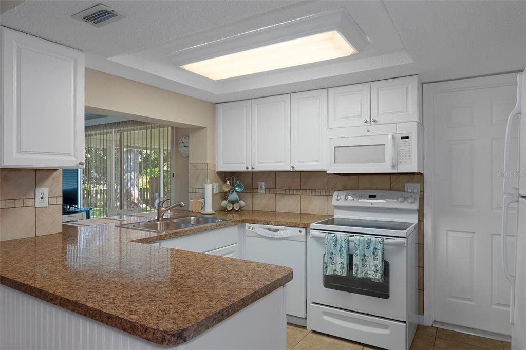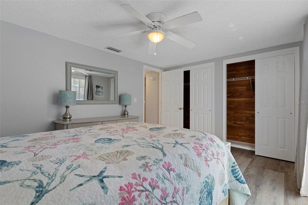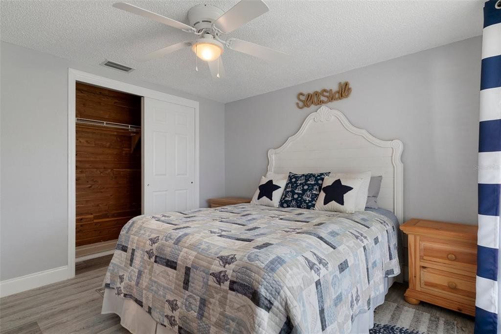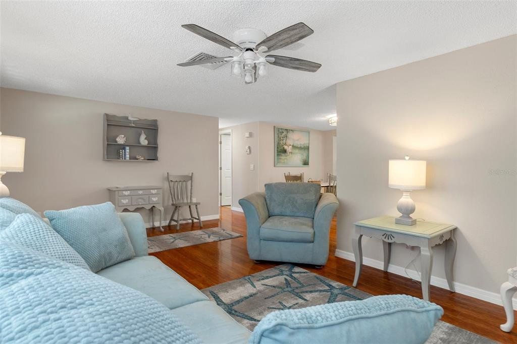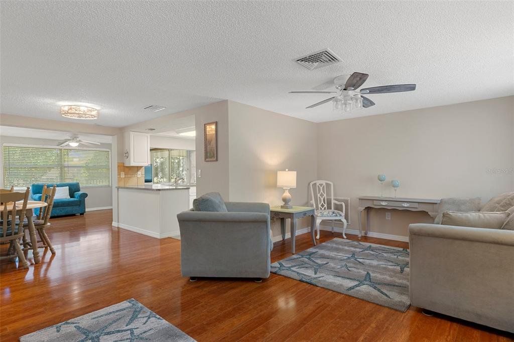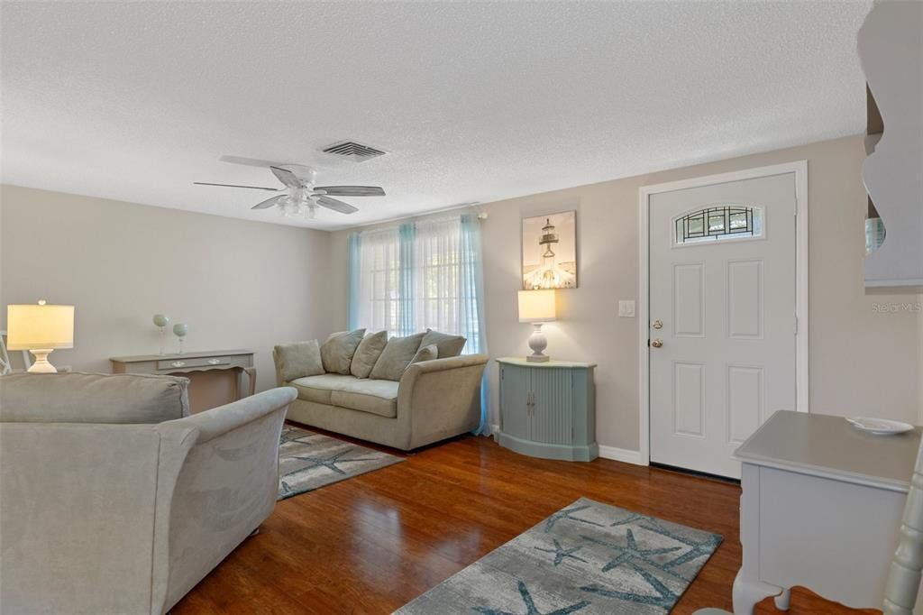 Charming 2-Bedroom Home in a Serene, Amenity-Rich Community! Welcome to this beautifully maintained 2-bedroom, 2-bath home offering approximately 1,100 square feet of light-filled living space. Featuring an open floorplan with updated flooring, a bright and modern kitchen, a refreshed main bathroom, and a screened lanai for relaxing or entertaining, this home is move-in ready and waiting for you. Situated in sought-after Flood Zone X, this home sits high and dry for added peace of mind. Enjoy the convenience of public water, along with a separate shared well for irrigation—perfect for keeping your lawn and garden thriving year-round. Just beyond the backyard is a peaceful greenspace, creating a private and scenic setting with no rear neighbors. Nestled in the quaint Beacon Woods neighborhood with mature trees and well-kept homes, the community offers a true sense of charm and pride of ownership. Low HOA fees include access to fantastic amenities such as a community pool, clubhouse, golf course, and more. You're also just minutes from shopping, dining, entertainment, and Florida’s world-class beaches—everything you need for the perfect Florida lifestyle! Don't miss your chance to make this delightful home yours—schedule your showing today!