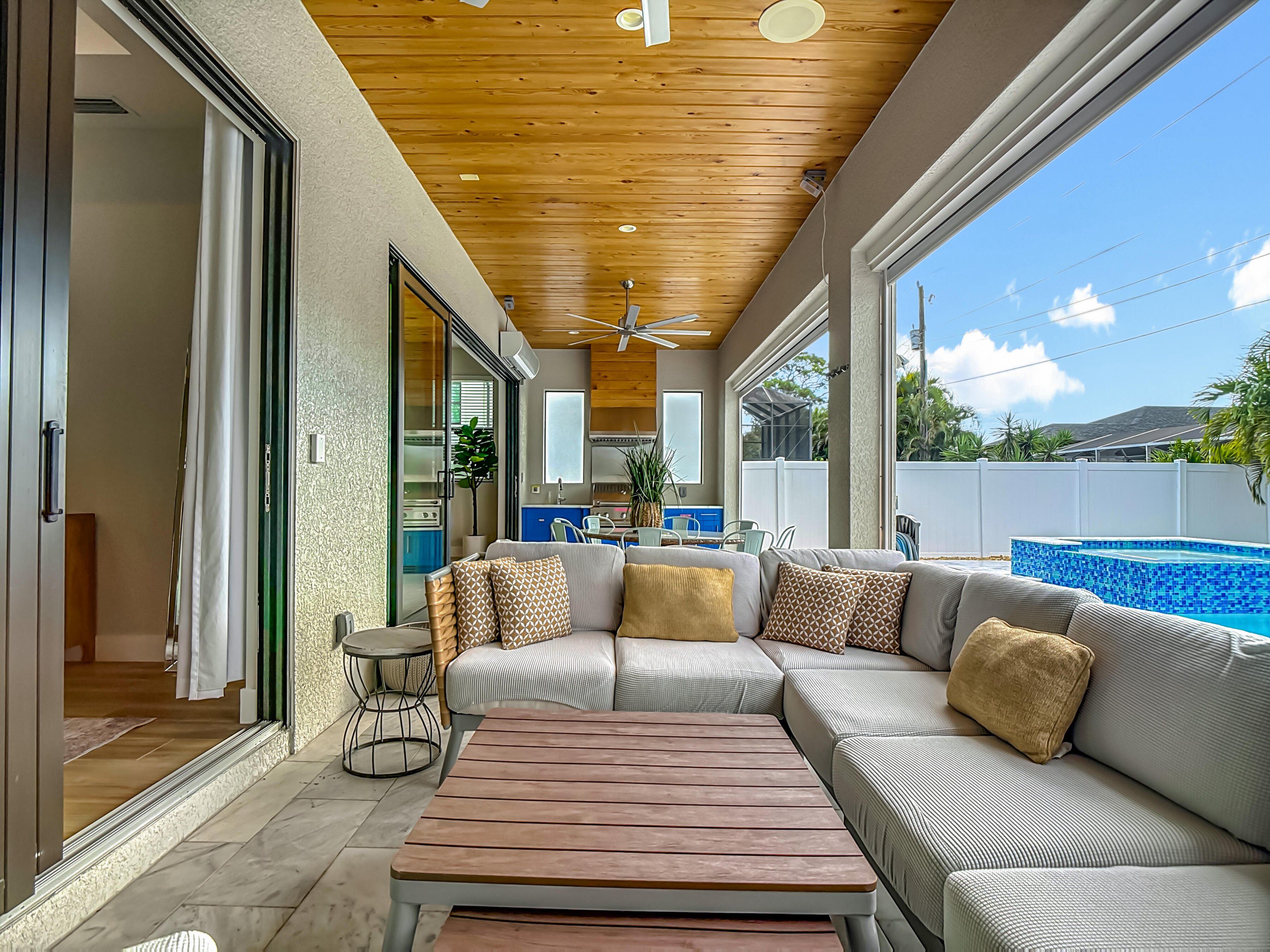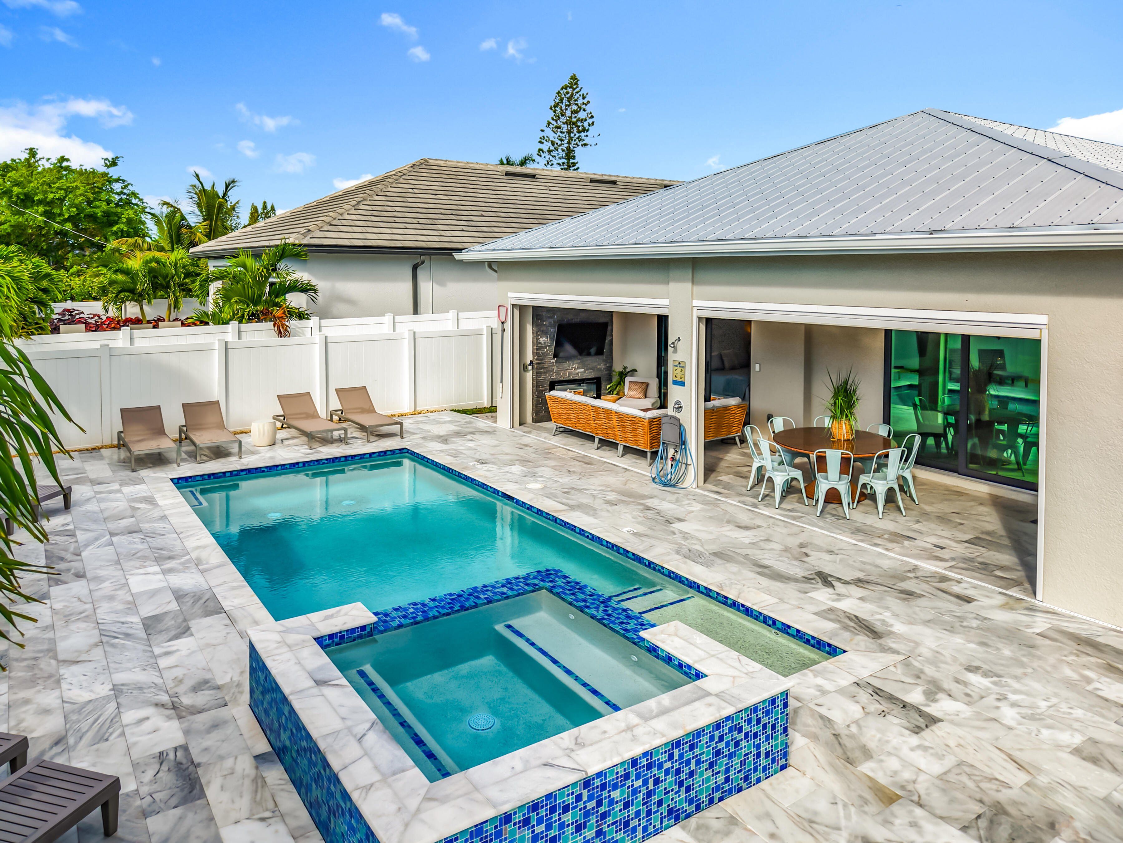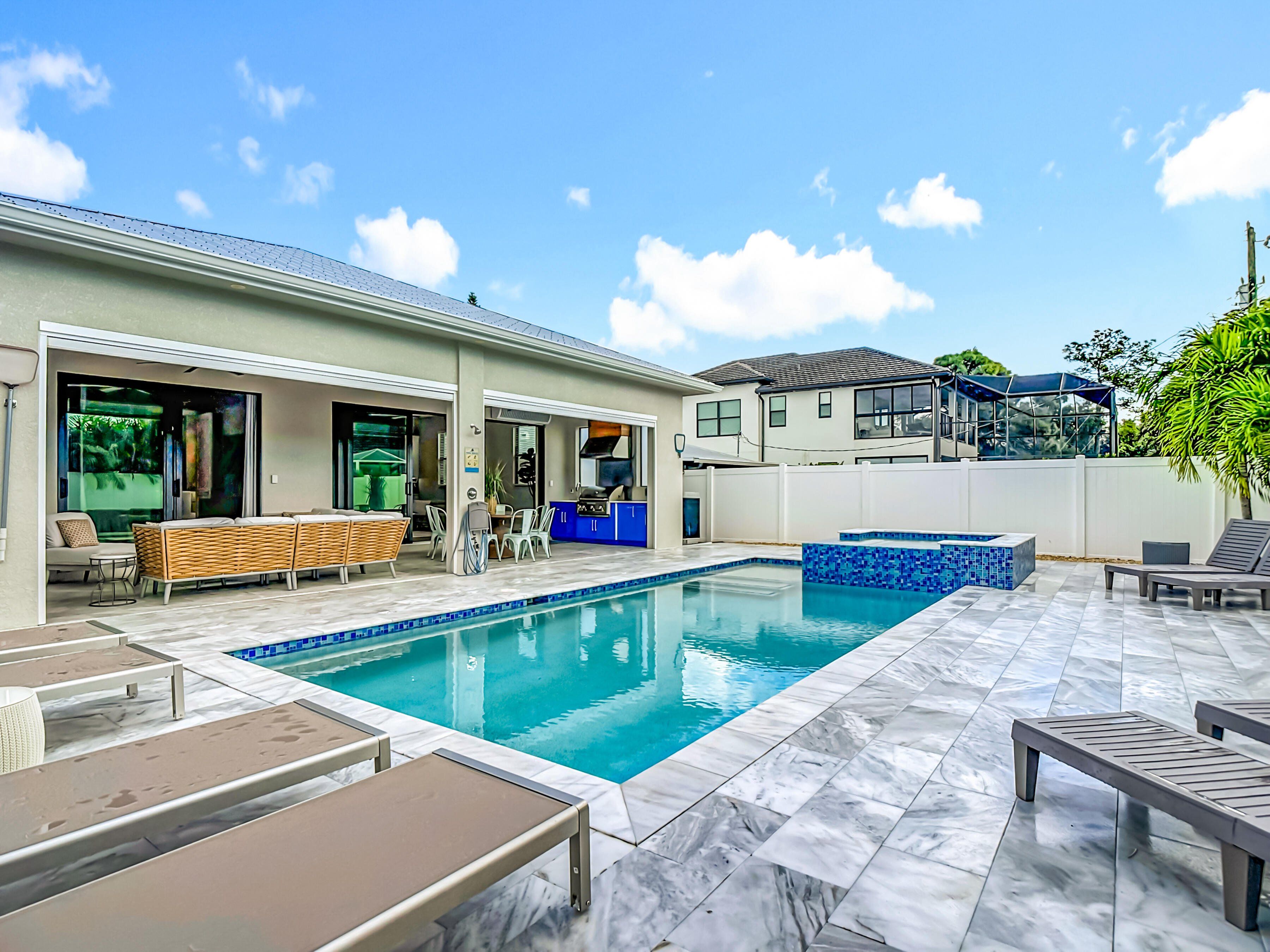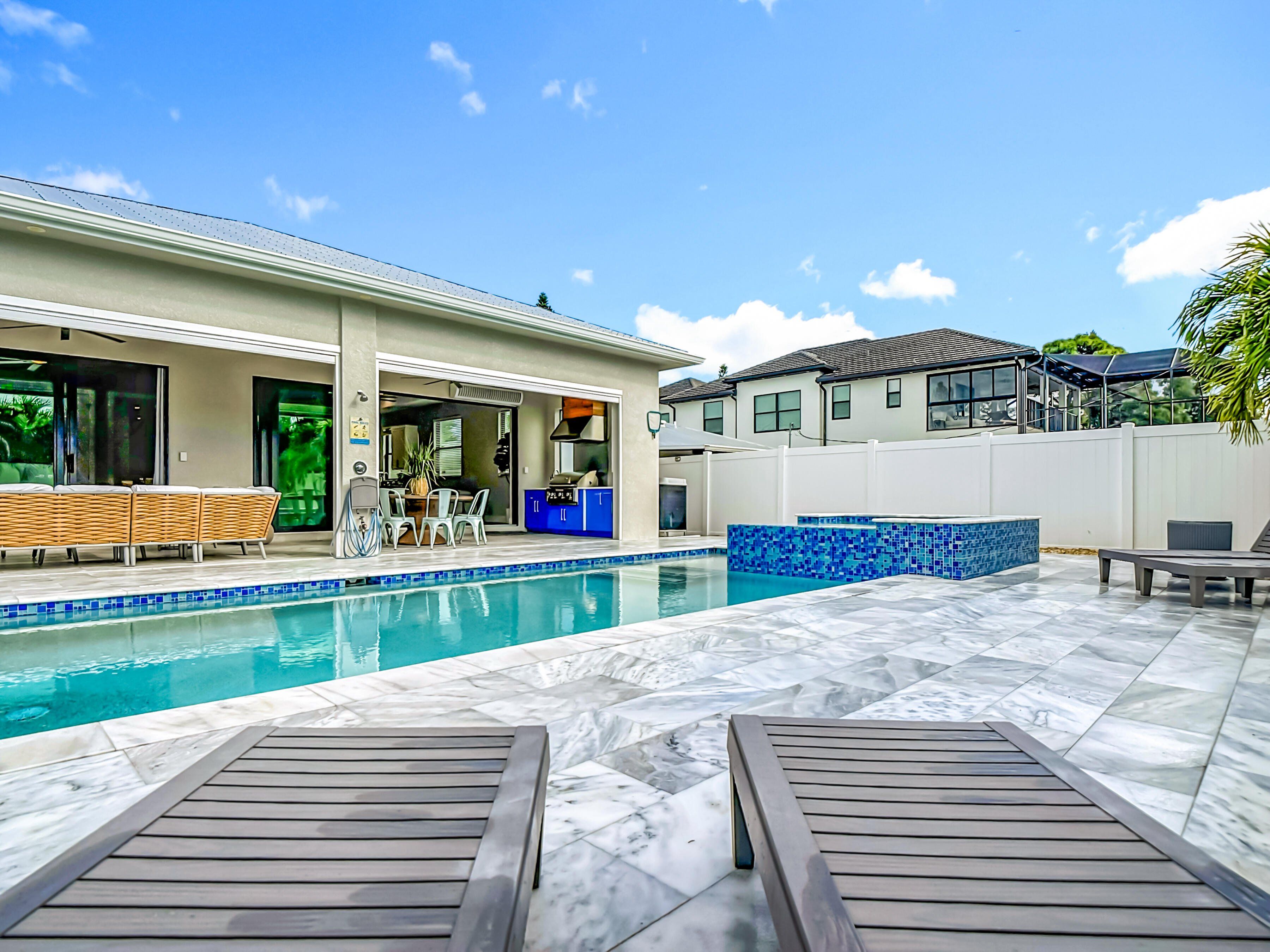 Unlock strong potential with this stunning new-construction coastal retreat—a rare 4-bedroom, 4-bath Naples property ideally positioned for high-demand luxury rentals. With 2025 improvements and an enviable indoor-outdoor layout, it’s designed to attract premium seasonal and short-term guests who prioritize style, comfort, and amenities. The last year it was rented a mere 5 months and it easily paid for whole year of costs of lawn, pool, electric, water, internet, insurance, and taxes. Inside, 10-foot ceilings, sunlit open living areas, and a chef’s kitchen with top-tier LG appliances create the polished, “wow-factor” experience renters are willing to pay for. Outdoors is the true moneymaker: a private resort-style pool + spa, oversized pool deck, gas grill, and fireplace—the kind of setup that drives stronger nightly rates, longer stays, and standout listing photos. Built for durability and reduced owner headaches, the home features impact windows and doors, hurricane shutters, a metal roof rated to 195 mph winds, and a whole-home backup generator—ideal for minimizing disruption and protecting bookings. Additional value-adds include southern exposure for a bright, sun-filled oversized lanai, motorized screens, commercial dehumidifiers for improved comfort and efficiency, and a separate A/C system for the garage. An oversized washer/dryer helps turn over guest stays quickly, and furnishings may convey, offering a streamlined path to a furnished, rent-ready setup. The location seals the deal: just over a mile to the beach and steps to shopping, dining, and Trader Joe’s—a proven combination for consistent guest demand. Whether you’re targeting seasonal luxury travelers or year-round visitors, this property delivers the features, resilience, and lifestyle amenities that make rentals perform—an exceptional opportunity to own a high-appeal, income-generating slice of Naples paradise.