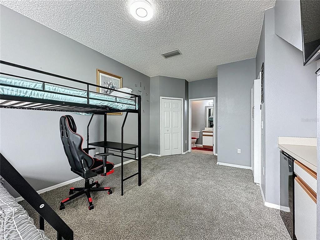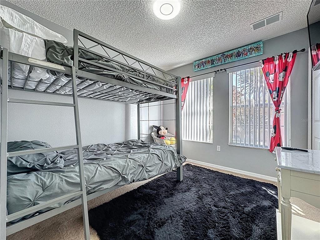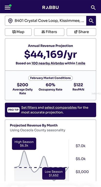 Calling all snowbirds or vacation rental/Airbnb investors! Emerald Island Resort is a prestigious gated & guarded community located on Disney's doorstep. Surrounded by a conservation area and containing 11 wooded acres inside the community, this is a true Florida escape! Inside the community, owners and guests alike can utilize all the facilities provided within the resort, which include the clubhouse sauna, fitness center, Internet cafe, Free Wi-Fi around the pool areas, Tiki- bar with FULL SERVICE BAR, two HEATED community pools and spas, a sand volleyball court, tennis courts, pickleball courts, mini golf, bike rental, basketball courts, three playgrounds, nature trail, and much more. The heated pool and daily valet trash service make this property a breeze to run as a vacation rental/Airbnb. The downstairs master bedroom with private entry door and attached bathroom also make this a great property to accommodate all types of guests or split the unit. A huge perk to this resort location is that it’s across the street from Margaritaville resort which has The Promenade at Sunset Walk loaded with tons of dining and entertainment options and often has car shows and live music in the evenings. On top of that, it’s only 11 min to Disney and 21 min to Universal, so you can’t beat the location as far as proximity to theme parks! The resort is made up of 505 single family pool homes and 216 townhomes which has it’s advantages because with that many homes paying into the HOA, the HOA is able to take impeccable care of the amenities. Inquire with list agent for financing options. HOA fee includes amenities, cable, internet, and trash.HOA fee includes: insurance for the exterior of the townhouse, cable/TV, internet service, gates and security, road maintenance, all amenities, valet daily trash service, landscaping. Data Rabbu estimates the property could potentially earn 44k gross income per year as a vacation rental/Airbnb/Vrbo. Since the downstairs master has a private exterior door, the house can also be split up as a rental property. The most recent comparable sale is 8419 blue lagoon drive, which is the same floorplan/condition and sold for $290,000 is December 2025.
