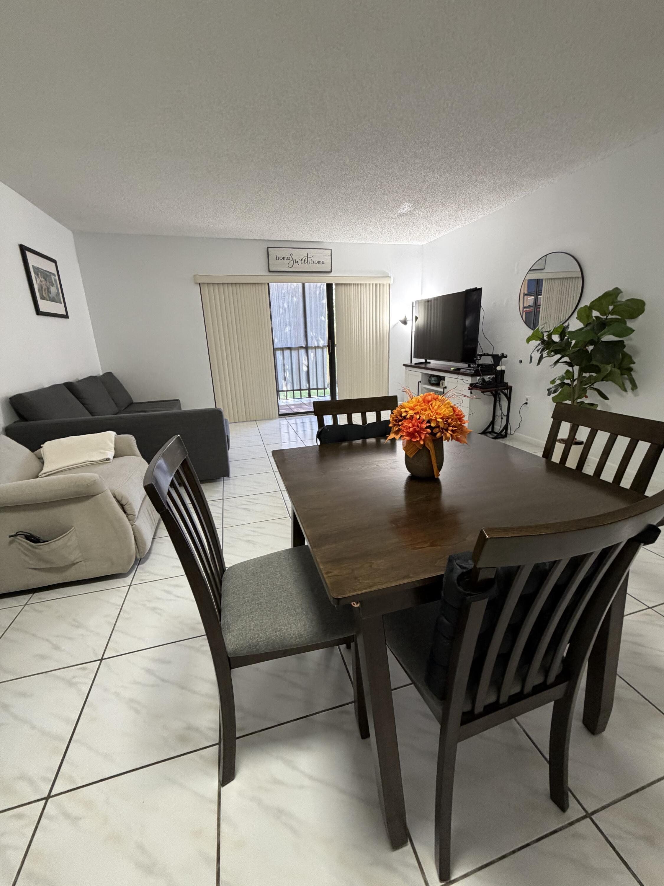 Lovely 2/2 spacious unit with washer and dryer in a large enclosed balcony. Quiet neighborhood centrally located . Tile and laminate flooring throughout with updated bathroom and kitchen. Ac blows very cold. Tennis courts , pool tables and gym available and 2 pools