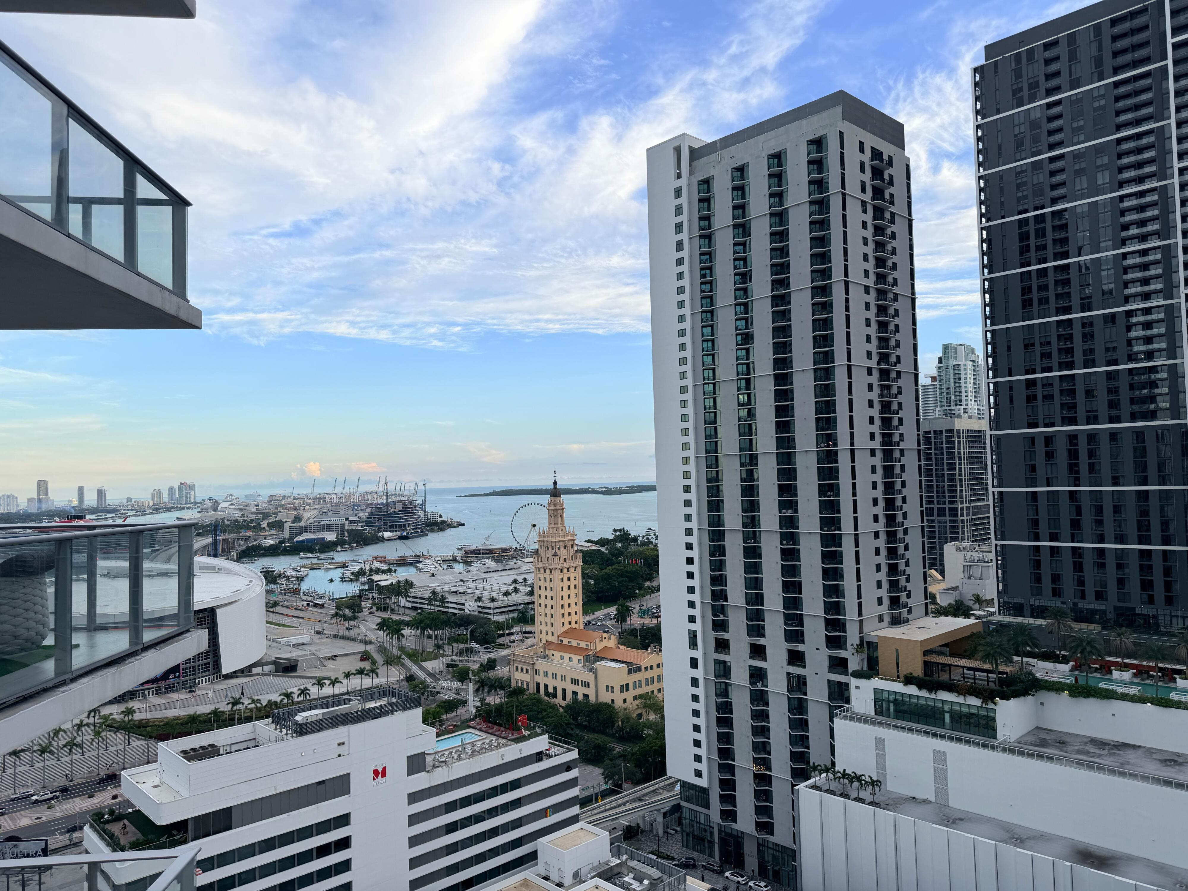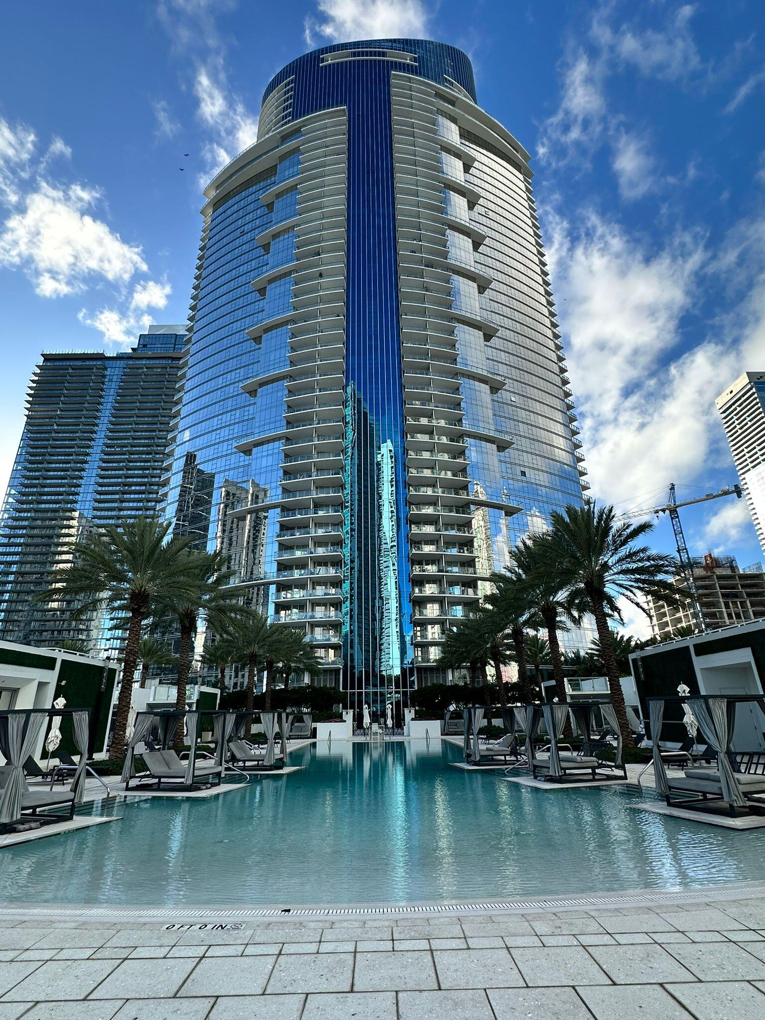 3/4 + fully enclosed den residence in PARAMOUNT MIAMI WORLDCENTER. Enjoy sunrise views from one side and sunset views from the other. Private elevator access opens directly into the unit. Layout includes an in-law suite with a wet bar and the option for a separate entrance. The home features new luxury vinyl flooring and high-end finishes, including Bosch and Sub-Zero appliances and Italkraft custom closets and fixtures. The unit has 3 terraces totaling approx. 400 sq ft, including additional private terrace off one bedroom. The den has been converted into a fourth bedroom, complete with a custom built-in desk and wine bar. Building has resort-style amenities, including multiple pools, spa, fitness center, squash, golf simulator, movie theater, tennis courts, valet, and guest areas.