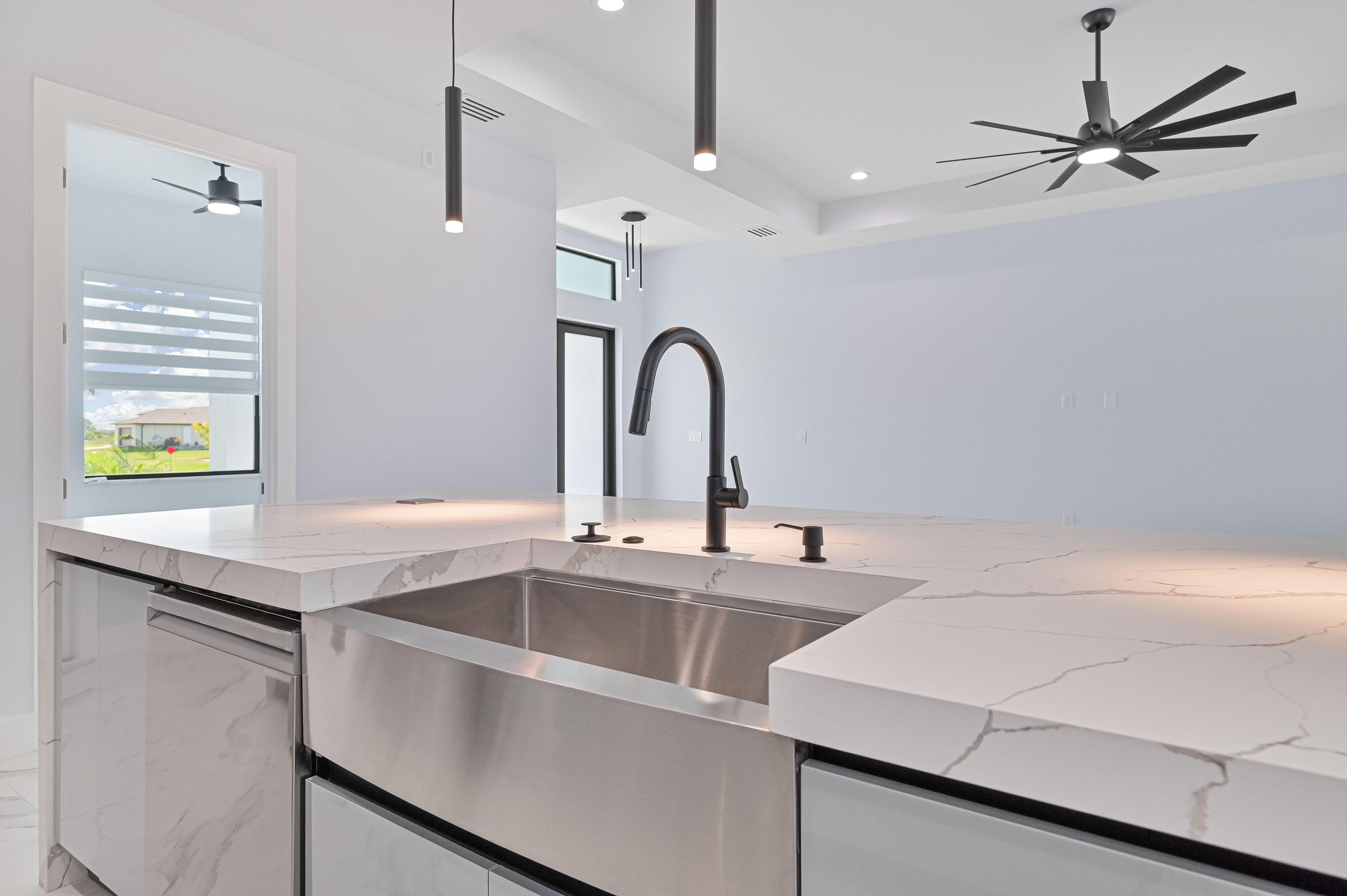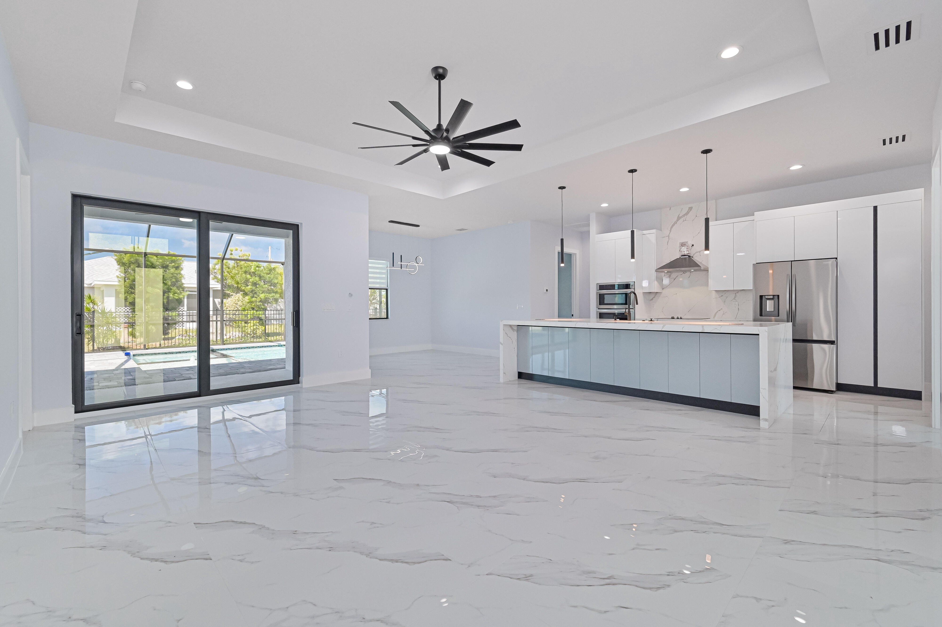 Motivated $eller!! Enjoy this spacious 3 bed 2 bath + Den(with closet) New construction home located at 900 NW 12th PL, Cape Coral, FL. Nestled in a peaceful neighborhood, this property offers ample opportunity to raise your family. Just minutes away from the public library, schools, and shopping. Activities like boating, bowling and Sun Splash water park are just around the corner. With convenient access to local amenities, parks, and waterways, you can enjoy the best that SWFLA has to offer. This pool home is complete and ready to move in. Highlights include a metal roof, quarts counter tops with waterfalls and full backsplash. Floors are tiled throughout, floor to ceiling tile in showers, stainless appliances, wood European style cabinets with soft close hinges, and a two car garage with epoxy floors. Spend the weekend outside in the beautiful screened enclosed pool and spa, while entertaining family and friends on the brick paved lanai. Don't miss this chance to own this magnificent home in Cape Coral's vibrant community.