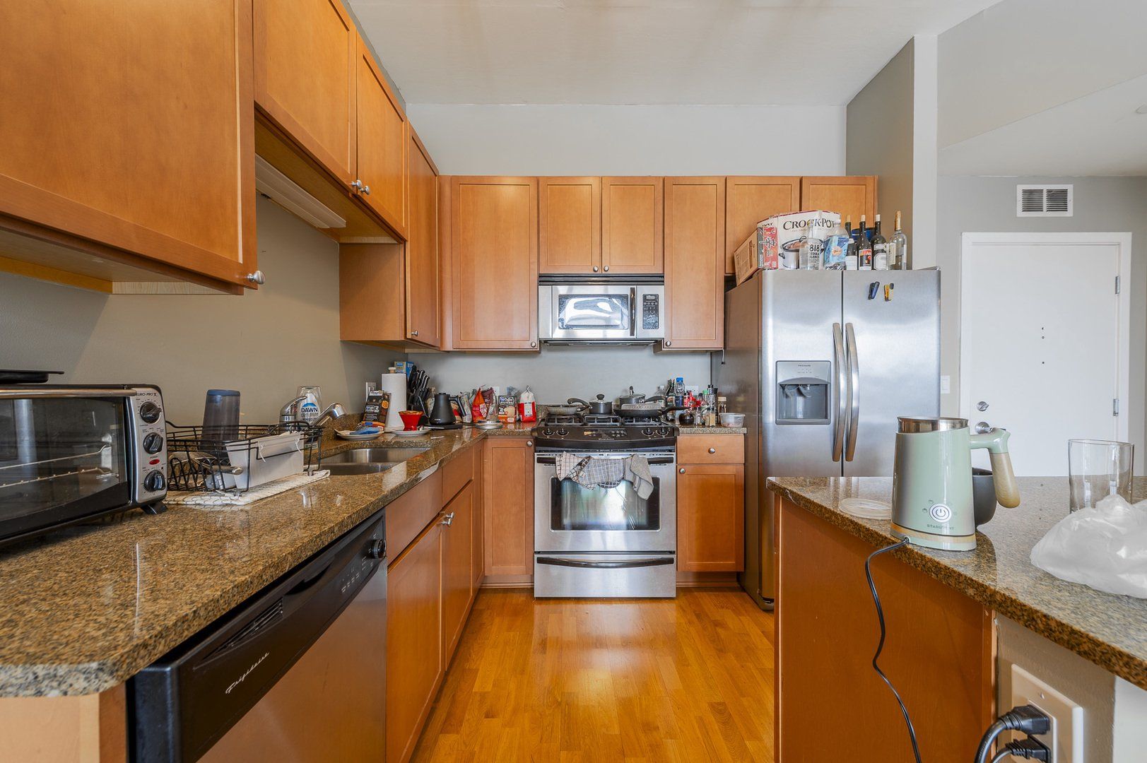 Welcome to your new West Loop home! This 1 bed / 1 bath condo features an open floorplan with hardwood flooring and floor to ceiling windows for amazing natural light. Unit includes stainless steel appliances, in unit washer/dryer, and south-facing outdoor space. 901 W Madison has everything you need with amenities including fitness center, door staff, dog run, sundeck, and attached party room with kitchen and pool table. Deeded garage parking available for $30K. Storage unit and bike storage available. Unbeatable location on Madison Row with easy access to shopping, dining, and entertainment.