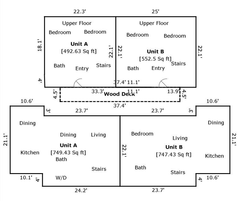 Large clean well-kept Duplex on oversized corner lot (wet-weather creek - see video) in un-incorporated Travis County, LOW 1.77 tax rate / minimal building restrictions, NO HOA, 0.57 acres, surrounded by Single Family Mansions. Large decks & balconies, Suite A, partly furnished, Suite B fully furnished. Collect long-term rent while you design your dream home! Minutes from downtown. Quick and easy commute! 8 mins to HEB. No Traffic, quiet & serene. Numerous NEW WINDOWS (Suite A&B), new sliding doors (2) in Suite A. Both Kitchens refreshed recently. 2/2 New kitchen appliances 2022, bath counter tops redone 2022. Round lime stone Terrace and mail box added 2022. Many other improvements. Wild life frequents the yard. (Suite A&B leased 2/2: $2,000/mo 3/2: $2,450/mo and want to extend beyond July 31 2026)