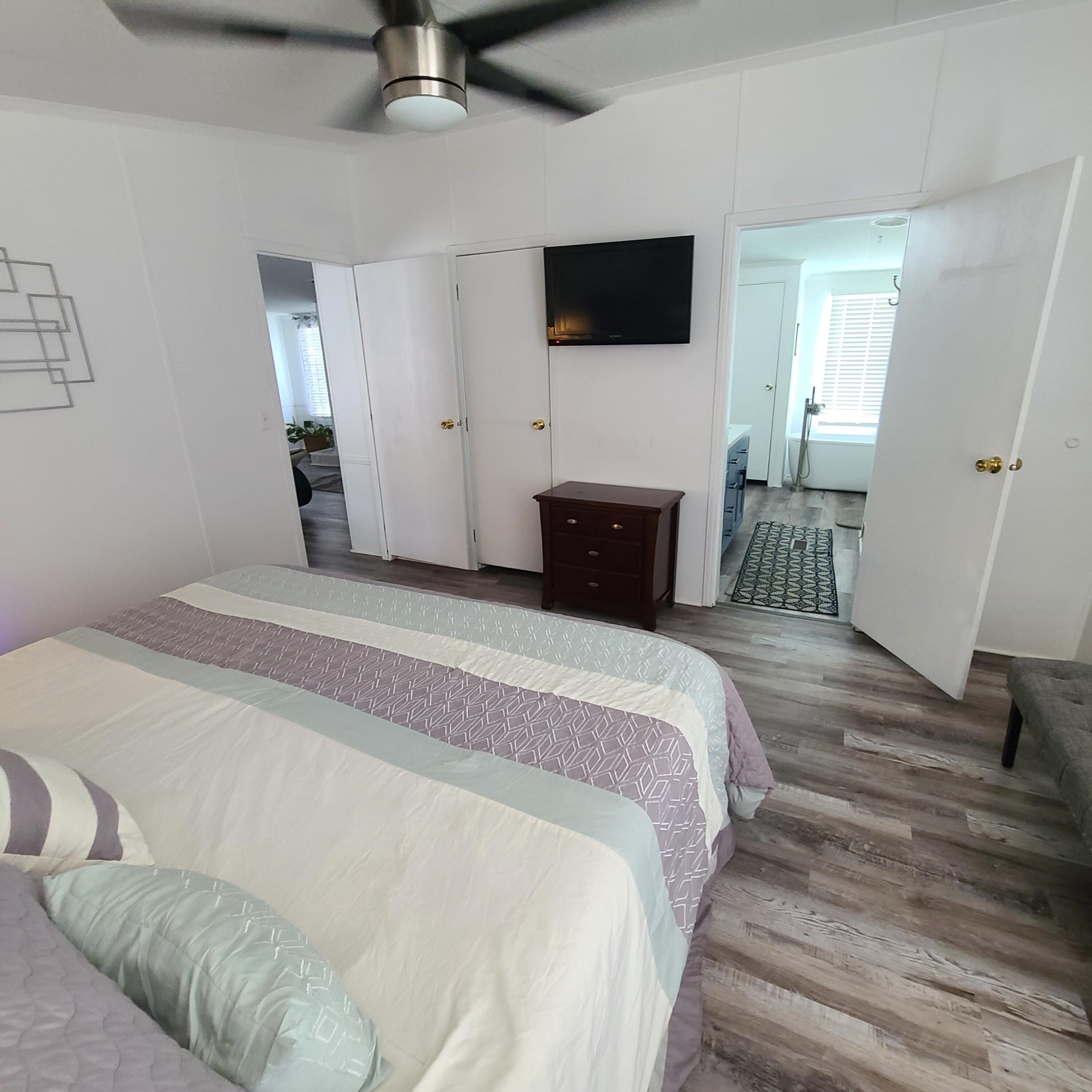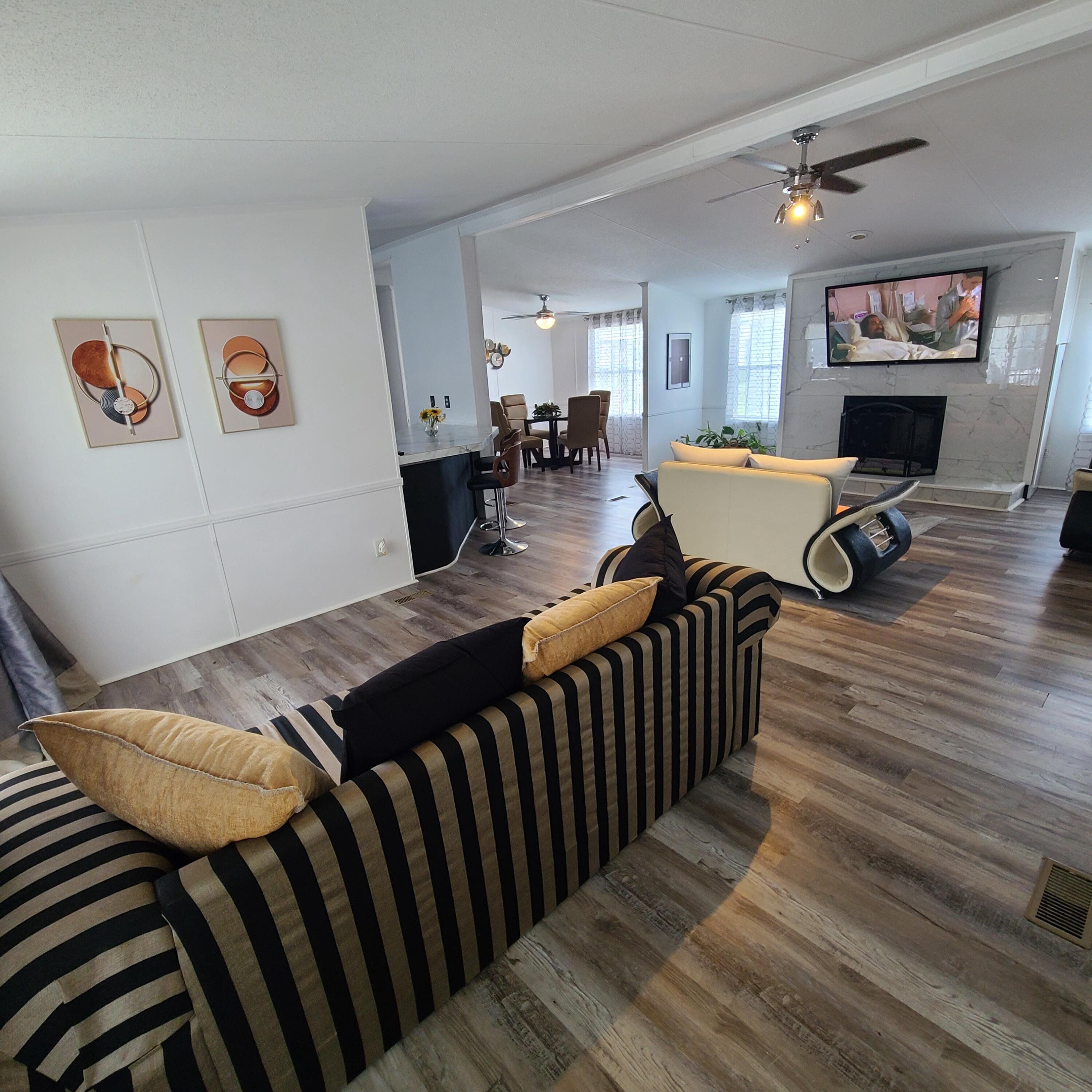 Your Luxury Mobile Home" is a FULLY FURNISHED Beautiful Large 3 Bedroom + 2 Bathroom Modern Luxury Home, Located In The Finest Most Well Maintained Mobile Home Community in South Atlanta...ONLY 7mins from Echo Park (ATL Motor Speedway) just for YOU!, From the time you open the front door you are transported into over 1824sf of an exclusive luxury experience that you have NEVER witnessed before...converted especially for a modern buyer that wants all of the creature comforts of a custom-built unique home that no one else has...but at an affordable price that no will ever believe....that is the LMH experience! And outside your paradise you will find a quiet and peaceful neighborhood community that boasts well-kept homes and yards...filled with friendly families and individuals that care about where they live and taking care of their property! An effective community management association takes pride in maintaining the highest quality standards, with enforceable policies that protect you and your investment! What We Have: •3 Large Size Bedrooms •Extra Large Master Closet •2 Bathrooms •1824sf Total Space •MODERN LUXURY FEATURES •Affordable Water, Trash and Electric •New HVAC System (2021) •Cable TV & Internet Availability •Great Price...Price Reduced For Quick Sale! •Complete Painting and Renovation of Every Room •Move To Your Own Land...For Greater Equity •Large Shed Out Back For Tools & Storage FULLY FURNISHED •Master Bedroom w/KING SIZE bed frame, headboard and mattress, 2-night stands, dresser, sitting bench, wall mount 40" TV and remote. •Second Bedroom includes Queen size bed frame and mattress, plus night stand, full-length custom-made sofa, Glass TV Entertainment stand, and 32" TV w/remote. •Convertible, 1 person futon and office desk and chair. •Living Room has designer modern contemporary loveseat and matching chair, additionally Queen Size contemporary Sofa Bed. PLUS a 65" wall mount TV. •Dining area includes a 52" Glass Table top with 4 matching chairs •Stainless appliances...Dishwasher and Stove are also included. •Custom Ceiling Fans picked for each room and area including: Master, Living, Dining, and other bedrooms...most with remote features! •Hallway and Master Closet LIDAR light system that senses movement and turns the lights on and off! •Various display art and decorations are included...linens are Not included! And don't forget the 3 televisions already connected to the OTA digital FREE TV service (over 40 channels)! This a perfect investment for someone that is part of the NASCAR CIRCUIT and wants it when they come to town...or for "out of state" college tuition reduction for state colleges etc.!