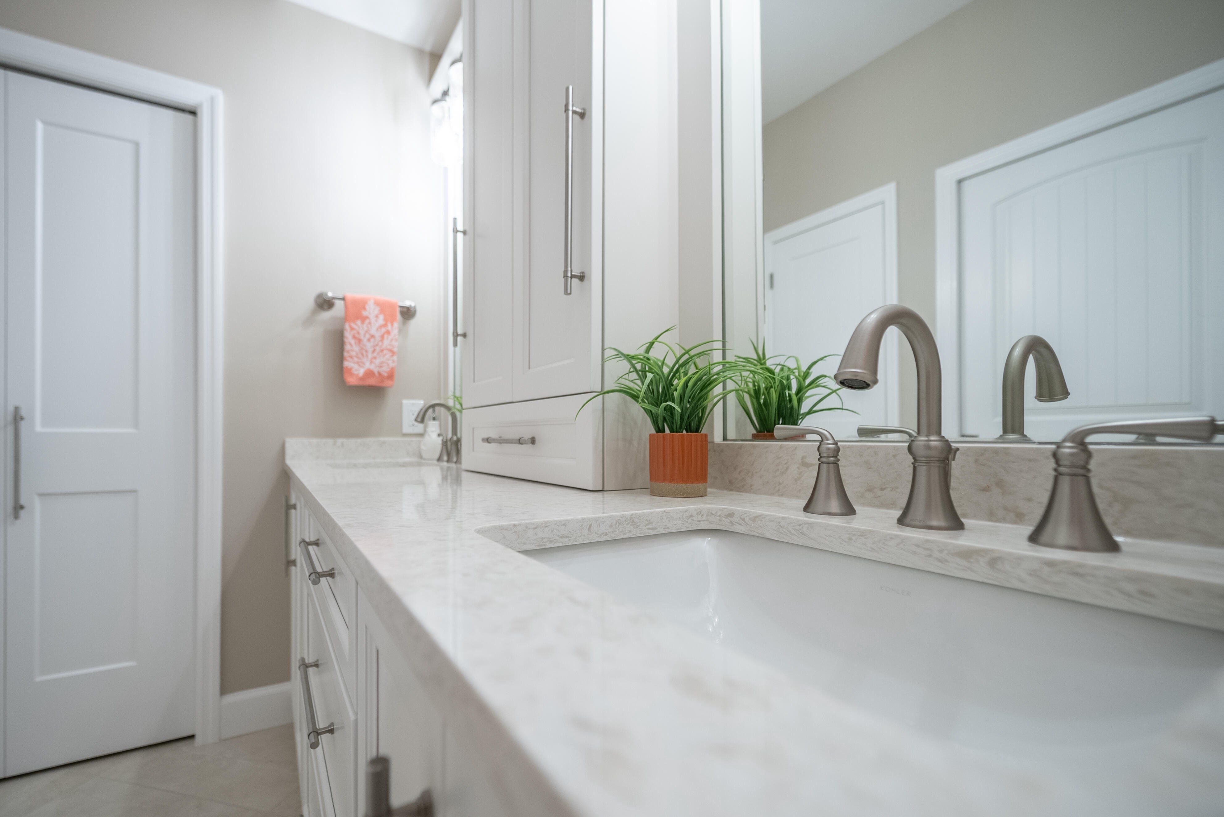 =============The spacious kitchen is a standout, showcasing high-end custom cabinetry with soft-close drawers and doors, all-drawer lower cabinets for maximum accessibility, and tall pantry cabinets with adjustable pull-out shelving. Quartz countertops continue seamlessly from the kitchen to the bathrooms and window sills, reinforcing the home’s clean, modern design language. A full suite of brand-new 2024 stainless steel appliances — including refrigerator, dishwasher, microwave, and range — rounds out this beautifully executed space.