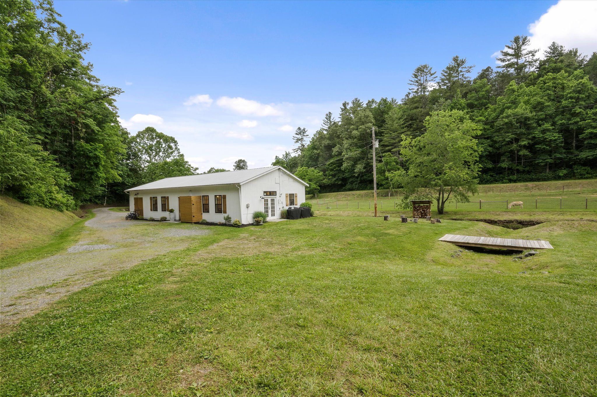 Will make an amazing family compound, event venue, high-end mountain development, or equestrian estate. Multiple income generating opportunities. Modern farmhouse on the property is 1365 square feet. Open floor plan with 2 bedrooms/ 1 bath and large attached storage area. Many high-end custom upgrades including; reclaimed beams, subway tile in the bathroom, floating shelves in the kitchen, ship lap walls, timber mantel, can lighting throughout, quartz countertops, reclaimed barnwood accent walls and ceilings, oversized island, large custom barn doors, 10’ tall interior ceilings, custom built cedar shutters, galvalume metal roof, large attached mechanical/ storage area, septic system, well, and whole home water filtration system.