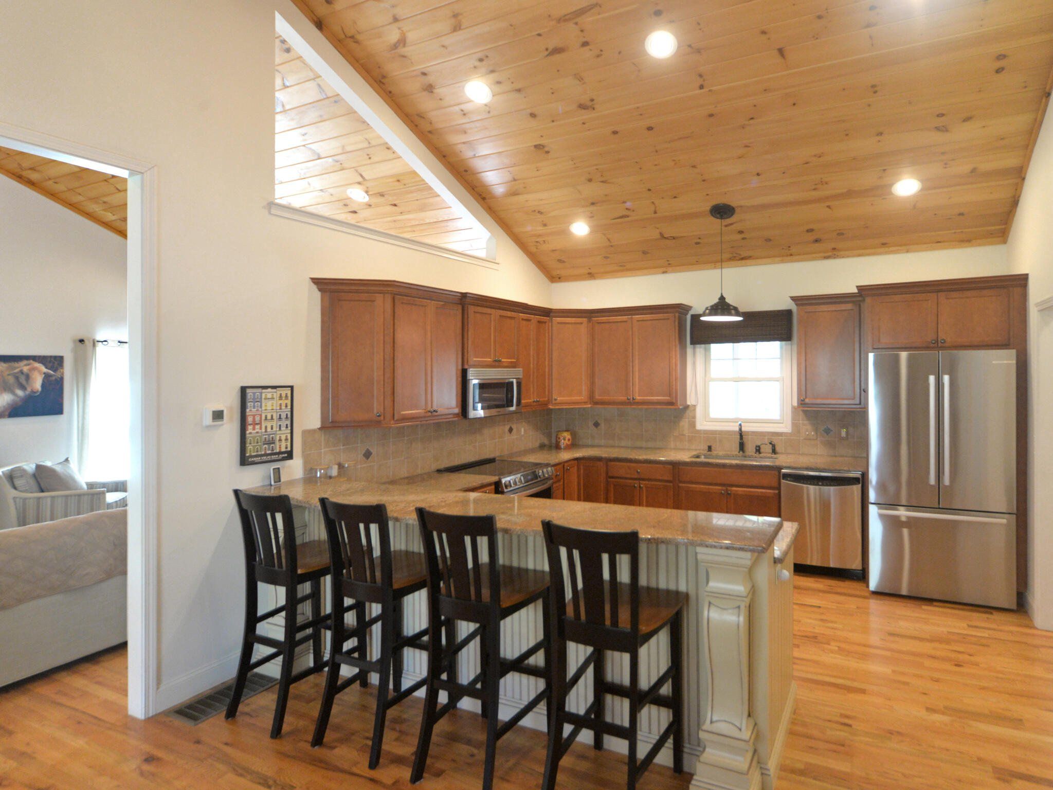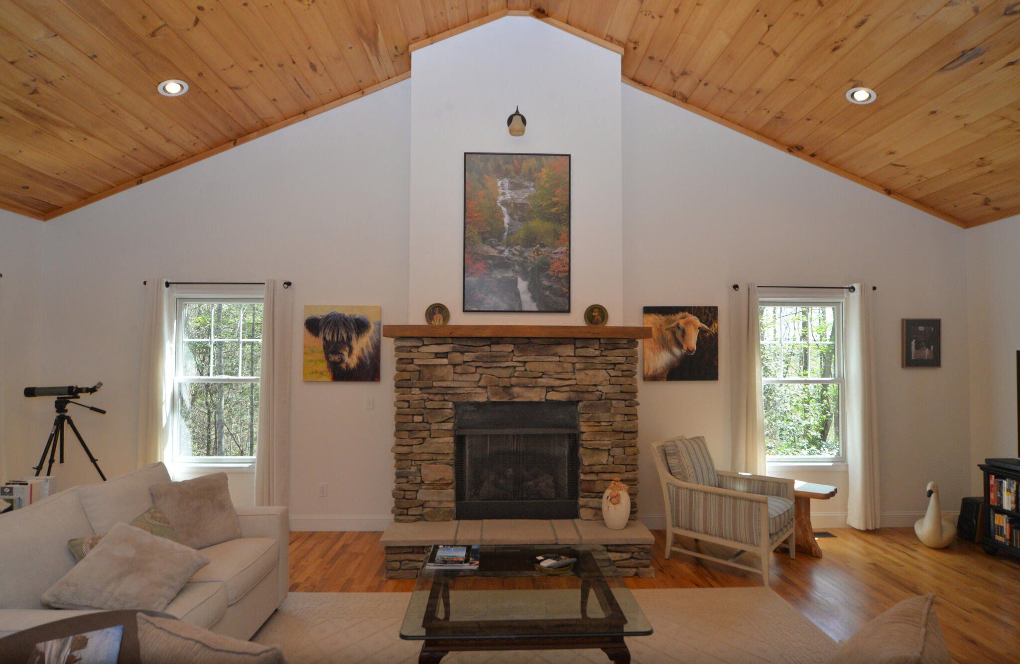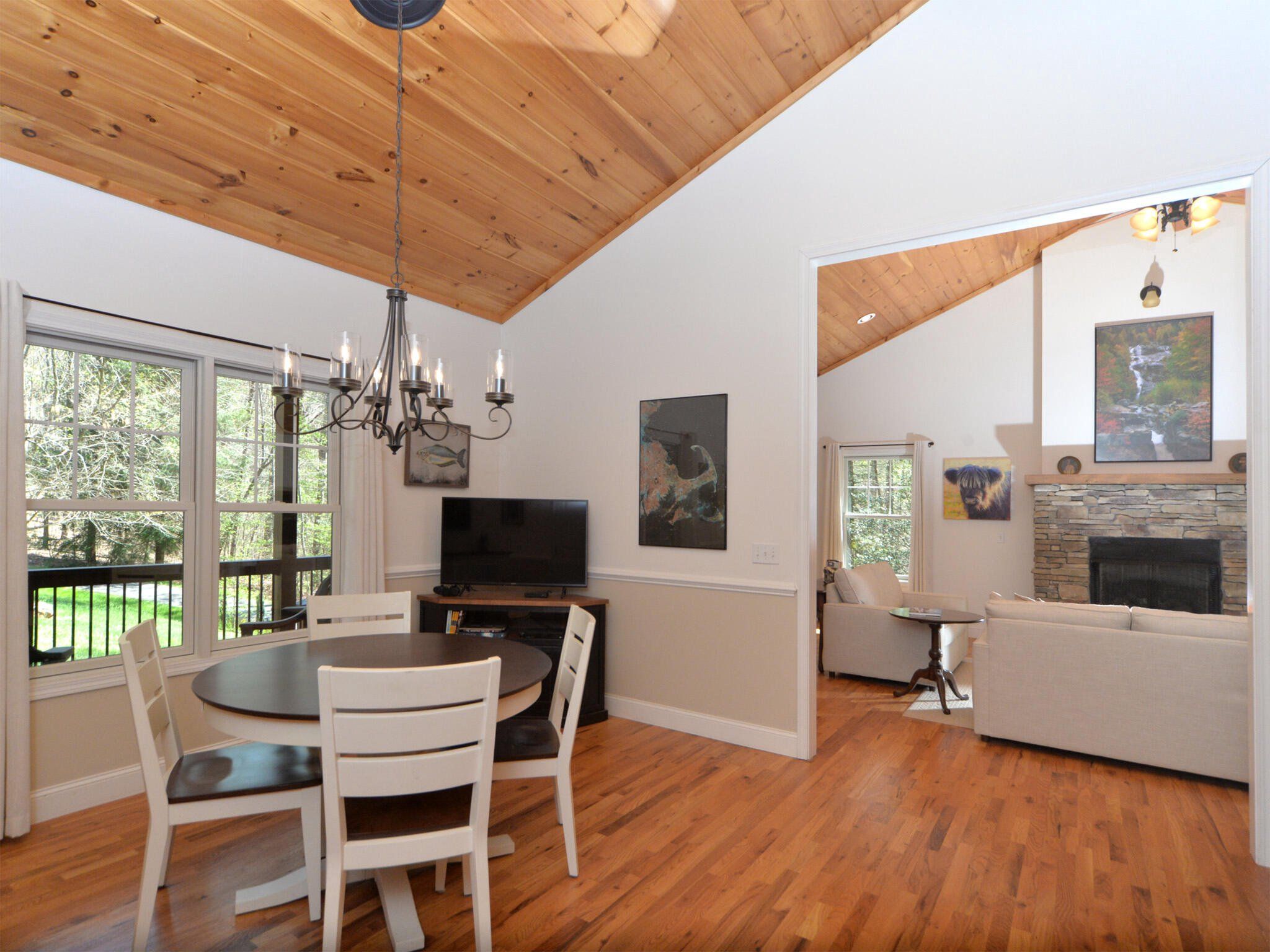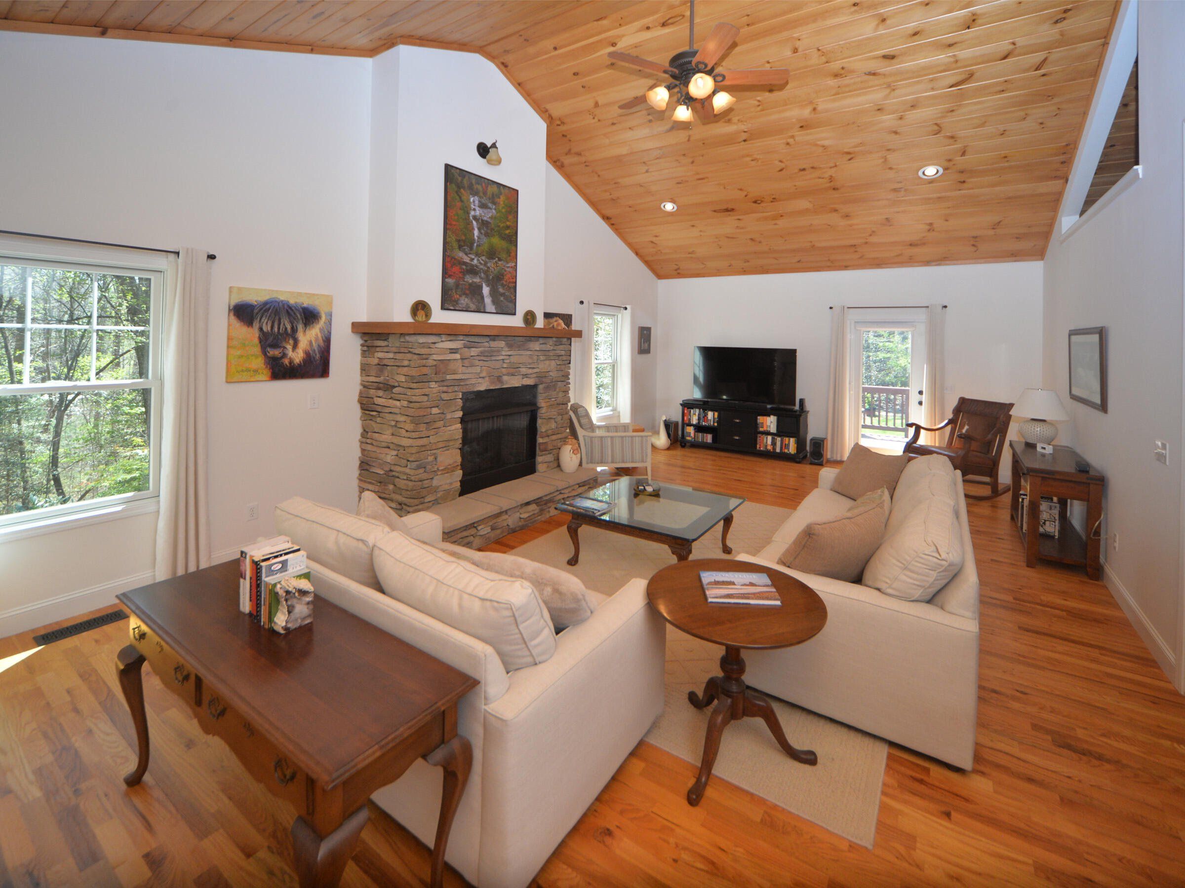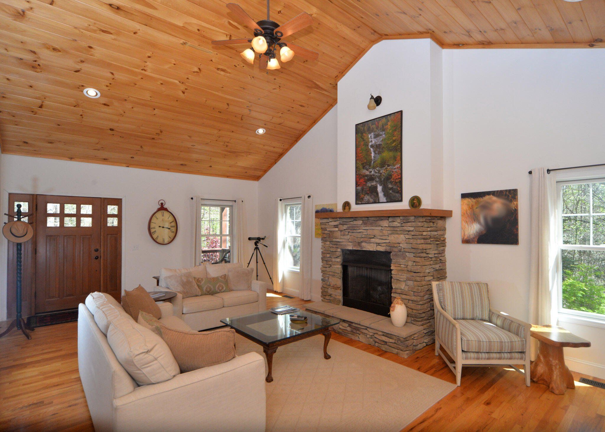 Experience the joy of mountain living in this warm and inviting home on a large, private wooded lot. Enjoy trail biking, hiking, biking and waterfall viewing in nearby Dupont State Forest and Pisgah National Park. You are also about halfway between Hendersonville and Brevard for dining, entertainment & shopping. Special features of this home include the wood cathedral ceiling, stone fireplace, stonework landscaping, Viking wine cooler, custom cabinetry in all bedroom closets, pantry, kitchen and garage. Recent updates include newer HVAC, induction stove, Bosch refrigerator. Hardwood throughout the first level. Large family room upstairs, full bath, and 2 large bedrooms which are now used as offices. Fenced-in yard, oversized garage with polymer coated floor and storage room. Home is in a small subdivision, Shuford Point, a very private setting with only 4 other homes. Ecusta Trail, a 19 mile multi-use greenway, when completed, is just a short walk or bike ride away.