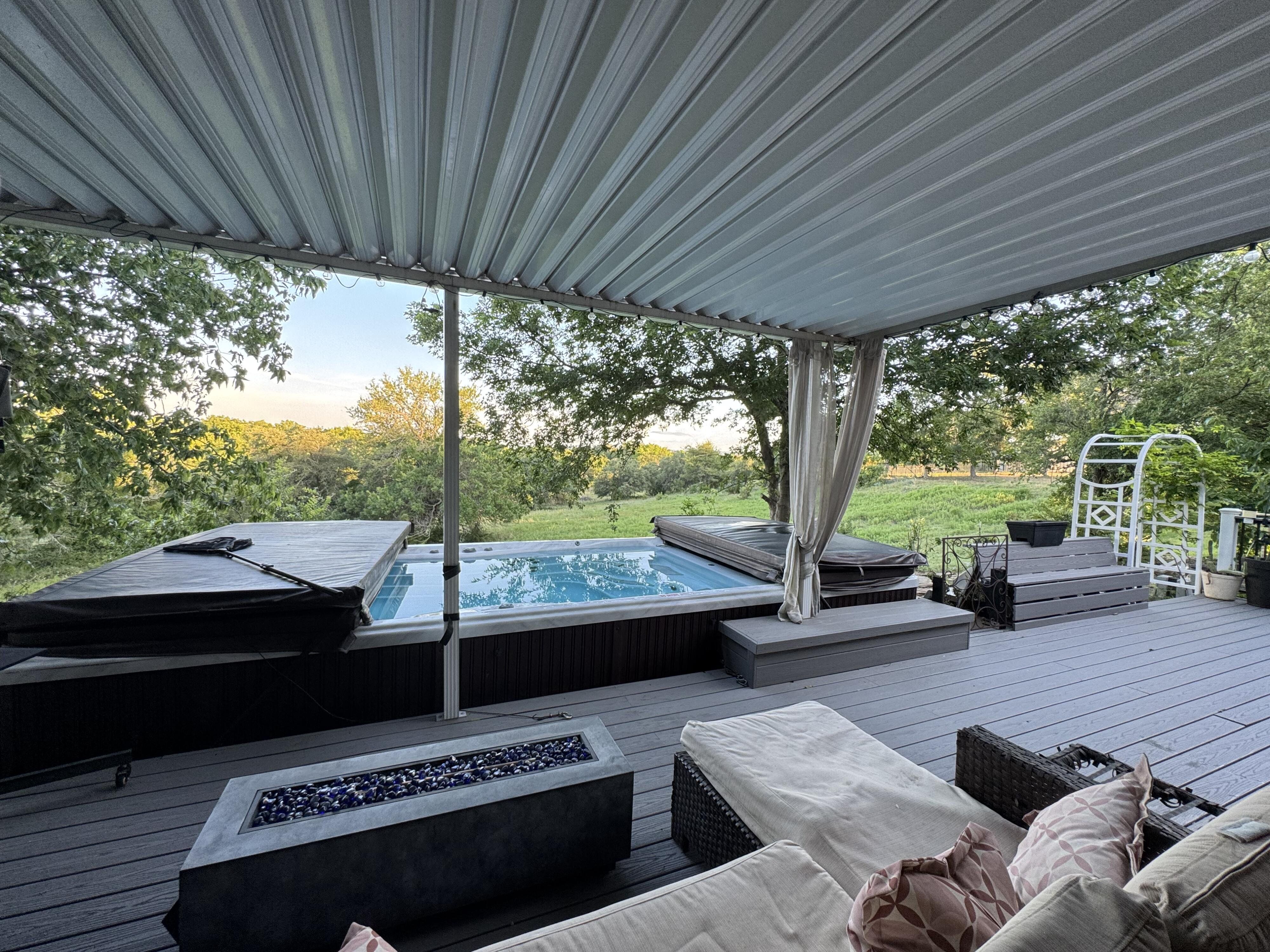 Charming ranch homestead between Azle & Weatherford! Just 30 min to Downtown Fort Worth, TX. 17+ hilled/treed pastured Agricultural Exempt acres, this home boasts a stylish design with modern updates throughout. Enjoy the large rooms, details, gardens, well-appointed kitchen with ample cabinet space, comfortable bedrooms, and a sparkling 19 foot Swimspa. The expansive acreage offers plenty of space for outdoor activities and animals such as goats, chickens, horses, hunting, etc. Several barns, including: 5 horse stalls plus tack room, hot water heater and washer/dryer hookup. Separate loafing barn, RV barn and tractor shed, large chicken coop, and two additional 2-car carports. Semi-lit arena, round pen, entirely fenced and cross fenced with no climb 2x4 goat/horse fencing, and main gate with keypad entry. Enjoy a 96x30 ft automated high tunnel greenhouse. 2 wells. Septic. Owned solar & lithium batteries! Built in 3 car garage. Newer roof, AC/heat pumps/water heater/softener! Owner is seller