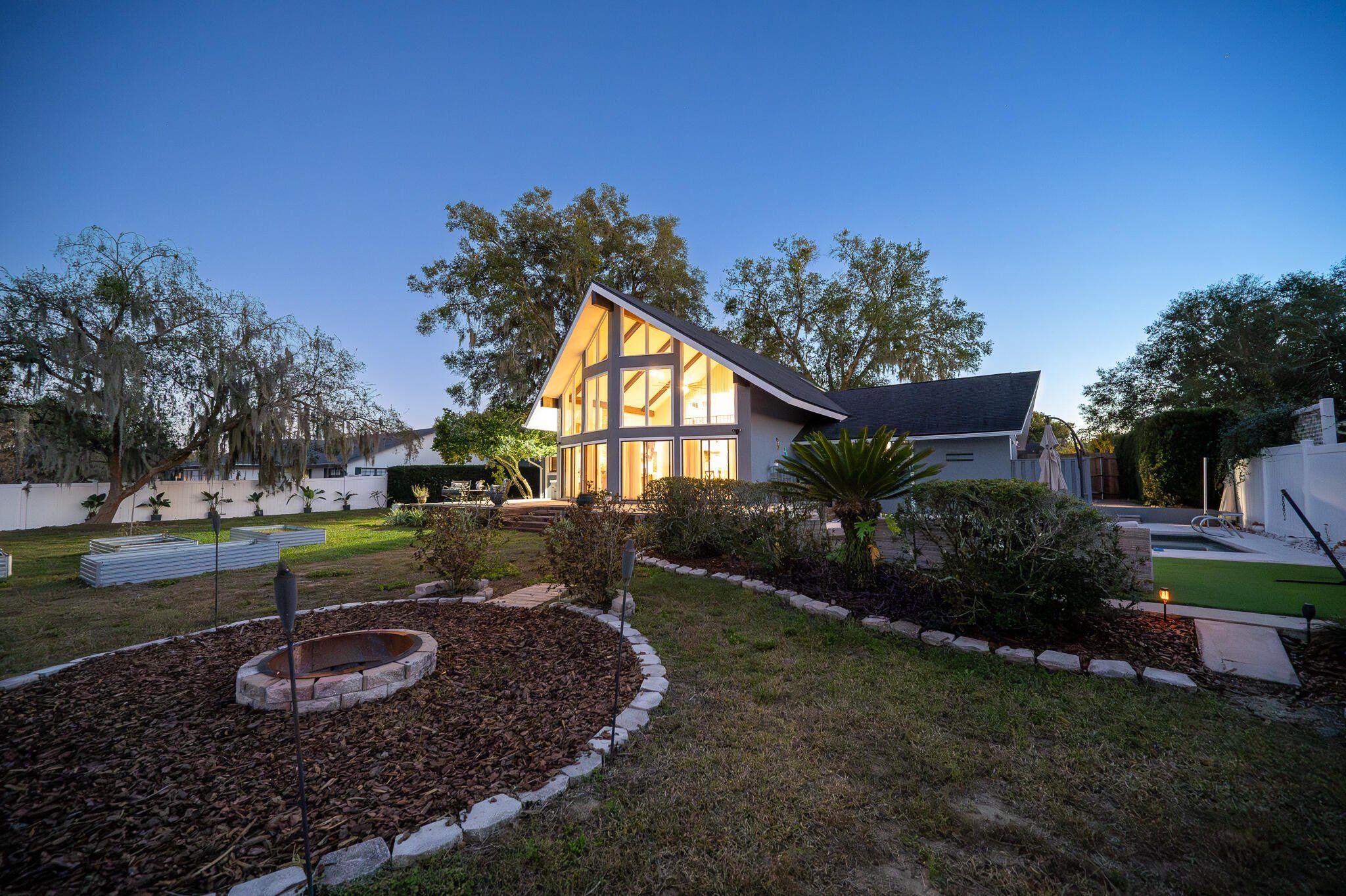 4-Bedroom or 3B with LARGE Den with movie projector and large screen, 2-Bathroom – Fully Renovated Pool Home on 0.4 Acres in a Golf Cart community. Check out the video tour! First entrance showcases a LARGE WALL of windows with the sky's breathtaking views, and the Full Master Suite on its own floor has a retreat feel! Discover your dream home in a peaceful, secluded neighborhood with no through traffic — where modern upgrades meet timeless charm. This beautifully renovated property has been fully updated throughout over the last six years, offering luxury, comfort, and convenience in one stunning package. Seller providing a 1-year Home Warranty Key Features: - Complete Renovation – New Roof, 2 New A/C units, New Kitchen, New Bathrooms, New Deck, New flooring, Newly painted & so much more! - Private backyard with mature oaks & wooded views and a New Shed for extras - Vaulted master suite with skylight, spa-like bath, soaking tub & dual showerheads - 20+ ft ceilings with wood beam accents & a wall of windows - Custom kitchen with pecan wood breakfast bar, reverse osmosis water purifier, and all appliances, even an 84" TV included! - Part of the renovated garage now has a large room with a wall of mirrors and a heavy-duty mat floor ready for a home gym *(not included in Sqft of home) - Cozy updated fireplace & jumbo ceiling fan centerpiece the living area - Ring security system with cameras that view all around the outside of the house - New back deck with pavers & rustic wood accents, all tied in with large railroad ties that make a statement overlooking the pool deck and firepit Lifestyle & Location: - Silver Lake is at the top of the street, a great place to walk, bike ride, or bird watch - Sumter College is a bike ride away - Close to many restaurants, shopping centers, and the Lake Square Mall - In the heart of the world-famous Chain of Lakes — home to Bassmaster competitions! Need a boat? Ask the seller about their 2021 Pontoon for sale! - Only 20 minutes to The Villages (world-renowned retiree capital) or historic Mount Dora known for its quaint shops and antiques. Don’t wait — homes like this don’t come along often. Step into the FLORIDA lifestyle you deserve. Appraisal Completed Nov 2025.