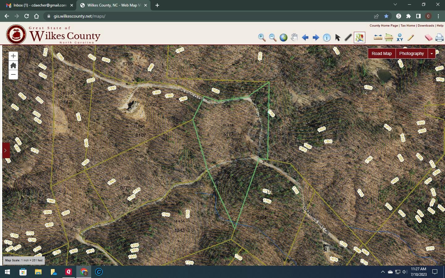 Discover the beauty of Carter Mountain with this spacious lot located in Hays, NC. If you are looking for privacy, seclusion and beautiful mountain setting in a gated, private community, then this property is for you. This 11-acre lot is fully wooded with 1 mountain stream and slopes from northwest to southeast with elevations ranging from approximately 1950 ft. to 1650 ft. From the access-controlled main gate, it is approximately 1.6 miles of quaint, maintained gravel roads to this lot. The Walnut Grove Owners Association maintains the road system throughout the year, including snow removal if necessary. One single family residential dwelling, customary accessory buildings, and a guest cottage are allowed on a lot. Rentals are allowed. Hunting is allowed. Annual Association fees are $425. Bylaws, Covenants etc. are available for review. Abutting Lot 26 also available with significant tax advantages.